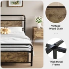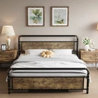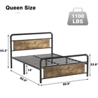Rustic Wood Board Design The board is made of durable P2 grade MDF wood, which is strong, waterproof and scratch resistant. The vintage rustic brown board is the to your bedroom. Round Edge for Safety Each corner of the bed frame is blunted to effectively reduce collision injuries caused by bumping into bed frame corners.Creating safer sleeping conditions Ample 14" Underbed Storage Sufficient underbed room for storage and clearance.Even small apartment can always be kept spacious and tidy.Friendly height suits all ages Noise-Free Design EVA strips perfectly isolate the bed frame from friction noise. No noise & no creak, ensuring that you can enjoy a sweet sleep. Metal Frame & Leg The extremely high-strength metal frame and heavy-duty slats ensure durability and stability. All is for your satisfaction. Easy to Assembly Easy to put together in 20 minutes.One-click buckles make installation easier and quicker. Anti-Scratch Pad Plastic foot plugs added to the bottom of the bed feet will never scratch your beloved floor and eliminate noise as well. Product Description Bed Frame Heavy Duty Metal Platform Full Queen King Size w/Headboard Footboard Detail: Sturdy and Durable: Crafted with high-quality metal and wood materials, this bed frame ensures stability and longevity. The bed frame's robust construction also ensures that it remains stable and secure, providing a comfortable and safe sleeping environment Unique Design: The iron and wood combination creates a unique and eye-catching aesthetic that can complement any bedroom's decor. The bed frame's minimalist design also makes it easy to incorporate into any existing decor style Noiseless Structure: Our bed frame is designed to operate quietly and smoothly. Rubber strips are pressed onto the slats to prevent noise, and plastic foot plugs protect your floors from scratches. These thoughtful details demonstrate our commitment to providing a high-quality product that not only operates quietly but also protects your home's surfaces Easy Installation: With a simple assembly process, this bed frame can be easily put together in just a few steps. The bed frame comes with all the necessary hardware and instructions, making it easy for anyone to assemble it Ample Space: The spacious area beneath the bed frame is perfect for storing items that you want to keep out of sight but easily accessible. With this bed frame, you can enjoy a clutter-free and organized living space, without sacrificing style or comfort Specification: Style: Rustic Material: Metal Assembly Required: Yes Color: Black Country of Origin: China Item Weight: 26 pounds Furniture Finish: Black Included Components: Headboard, Slat Special Feature: Squeak Resistant Finish Type: Wood Package Included: 1pcs Bed Frame