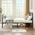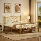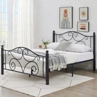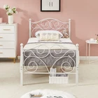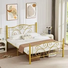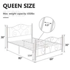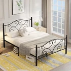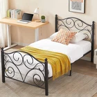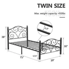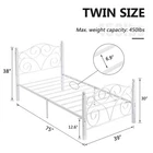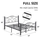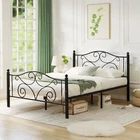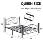 Features v 【 Victorian Style Design】Unique curved design headboard and footboard, with four-cornered vintage uprights. The whole bed will bring elegance and retro style to the room. Especially with a sense of design. v 【 No Noise】Every part of this bed frame has been specially polished to make it fit perfectly, and the non-slip foot caps not only protect your floor, but also no squeak when you turn over in the middle of the night. v 【 Sturdy and Stable】This bed frame is strongly supported by 6 legs and up to 12 metal slats, which can provide better support and increase the stability for long-term use. v 【 Extra Storage Space】With 12 inches of storage space under the bed, it provides ample storage space. Storage boxes, quilts, clothes, toys, etc. can be placed. v 【 No Box Springs Needed】This bed frame does not need box springs, and the stable bed frame design can ensure that your mattress is not easy to shift. Give you a comfortable sleep. v 【 Easy to Assemble】All parts, tools and assembly instructions are included. Each part is labeled, just follow the pictures step by step to complete the installation quickly. Specifications of Twin Size: Material: Metal Frame,Heavy duty steel Slat (No box spring needed) Overall dimensions: 75"L x 39"W x 38"H (Adapts to standard Twin size mattresses) Maximum weight capacity: 400 lb Ground clearance: 12.6'' Twin weight:33 lb Specifications of Full Size: Material: Metal Frame, Heavy duty steel Slat (No box spring needed) Overall dimensions: 75"L x 54"W x 38"H (Adapts to standard Full size mattresses) Maximum weight capacity: 600 lb Ground clearance: 12.6'' Full weight:44 lb Specifications of the Queen Size: Material: Metal Frame, Heavy duty steel Slat (No box spring needed) Overall dimensions: 80"L x 60"W x 38"H (Adapts to standard Queen size mattresses) Maximum weight capacity: 630 lb Ground clearance: 12.6'' Queen weight:47 lb Packing list: 1 x Bed Frame 1 X Installation instructions (all accessories included, no need to prepare your own tools) Note: 1. Please allow ±1/0.5'' error due to manual measurement. 2. Mattress, box spring, and bedding (comforter, sheets, pillows, etc.) are NOT included.