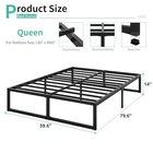 Bed Frame Heavy Duty Steel Slat Support Metal Platform Bed Frame Queen 14 Inch