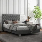 Color: Grey Material: MDF, Wood, Velvet, Sponge, Metal Overall Dimension: 77" x 56.5" x 45.5" (L x W x H) Recommended Mattress: Full (not included) Recommended Mattress Thickness: 10”-12” Net Weight: 67 lbs Weight Capacity: 1000 lb Package includes: 1 x Upholstered Bed Frame 1 x User Guide Description: Still looking for a favored bed frame? Our upholstered bed meets your daily needs for both sleep and leisure. Supported by solid wooden slats, the bed base features outstanding toughness and bending resistance. The extra middle support legs with adjustable foot pads further enhance overall stability. More, the headboard is filled with soft sponge and covered with skin-friendly velvet for the purpose of maximum comfort and relaxation. All in all, this well-designed bed frame would undoubtedly be a perfect addition for bedroom, guestroom, dorm and apartment, etc. Features: Solid slats support accounts for reliable structure Middle support legs with adjustable foot pads for higher stability Non-slip foot pads prevent the floor getting damaged Unique button tufted headboard highlights the bed frame High density sponge padded headboard for ultimate comfort Skin-friendly velvet surface is easy to clean and maintain Enough under-bed storage space allows for easy cleaning Simple and modern design matches well with interior decoration Perfect addition for bedroom, guestroom, dorm and apartment, etc. Easy to assemble under the guidance of instruction Specifications: Color: Grey Material: MDF, Wood, Velvet, Sponge, Metal Overall Dimension: 77" x 56.5" x 45.5" (L x W x H) Recommended Mattress: Full (not included) Recommended Mattress Thickness: 10”-12” Net Weight: 67 lbs Weight Capacity: 1000 lb Package includes: 1 x Upholstered Bed Frame 1 x User Guide