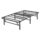 Steel Smart Base Bed Frame This Steel Smart Base Bed Frame is a steel bed foundation that eliminates the need for a box spring. It requires no tools for assembly and can be put together in minutes. This bed frame with maximum weight capacity will provide ultimate support for twin, queen, twin XL, king, California king or full size mattresses. Flat, rigid mattress surface of this 14 inch foundation bed frame gives you large room for under bed storage also offers the utmost comfort for perfect good night sleep. Moreover, its 12 contact points between the mattress and floor offer that rock solid support and stability. This sturdy bed frame is equipped with caps on legs that helps to keep your floor scar and mar-free. FEATURES Foundation bed frame 14 inches high, allowing for useful under-bed storage Eliminates the need for a box spring Steel bed foundation with a black finish Easy assembly without tools Flat, rigid surface protects mattress Provides level support for mattress for ultimate sleep comfort Twin/twin XL: maximum weight capacity of 1,200 lbs. Queen/king/Cal king: maximum weight capacity of 2,400 lbs. 12 points of contact to the floor Caps on legs to protect your floor Twin size frame: 75"L x 39"W x 14"H Twin XL size frame: 80"L x 39"W x 14"H Full size frame: 75"L x 54"W x 14"H Queen size frame: 80"L x 60"W x 14"H King size frame: 80"L x 76"W x 14"H Cal king size frame: 84"L x 72"W x 14"H FREE SHIPPING!