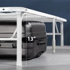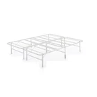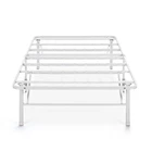 Steel Smart Base Bed Frame This Steel Smart Base Bed Frame is a steel bed foundation that eliminates the need for a box spring. It requires no tools for assembly and can be put together in minutes. This slumber 1 bed frame with maximum weight capacity will provide ultimate support for twin, queen, twin XL, king, California king or full size mattresses. Flat, rigid mattress surface of this 14 inch foundation bed frame gives you large room for under bed storage also offers the utmost comfort for perfect good night sleep. Moreover, its 12 contact points between the mattress and floor offer that rock solid support and stability. This sturdy king bed frame is equipped with caps on legs that helps to keep your floor scar and mar-free. FEATURES Foundation bed frame 14 inches high, allowing for useful under-bed storage Eliminates the need for a box spring Steel bed foundation with a white finish Easy assembly without tools Flat, rigid surface protects mattress Provides level support for mattress for ultimate sleep comfort Twin/twin XL: maximum weight capacity of 1,200 lbs. Queen/king/Cal king: maximum weight capacity of 2,400 lbs. 12 points of contact to the floor Caps on legs to protect your floor Twin size frame: 75"L x 39"W x 14"H Twin XL size frame: 80"L x 39"W x 14"H Full size frame: 75"L x 54"W x 14"H Queen size frame: 80"L x 60"W x 14"H King size frame: 80"L x 76"W x 14"H Cal king size frame: 84"L x 72"W x 14"H FREE SHIPPING!