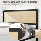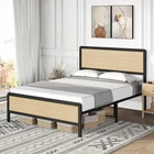 Full/Queen Metal Bed Frame with Rattan Headboard and Footboard, Strong Metal Slat Support, No Box Spring Needed, Full Size, Black & Oak Rattan Style - This bed frame with a rattan headboard and footboard is a lovely addition to any bedroom. The use of high-quality, durable rattan adds both strength and visual appeal to the frame. Its lightweight nature makes it more easy to move, while the rustic, textural feel can create a warm and inviting atmosphere in the room. This stylish and sturdy piece is sure to enhance the overall look and feel of the space. Protective Design - The curved design of the headboard and footboard on the rattan platform bed frame not only adds to its aesthetic appeal but also provides a sense of security and protection. The inclusion of rubber non-slip pads under the legs demonstrates a thoughtful consideration for protecting your floors from potential scratches. Sturdy and Durable : The combination of high-quality rattan board and heavy-duty metal support frames in this bed frame ensures exceptional stability and durability. The inclusion of center support bars and extra support legs further enhances the bed frame's ability to provide optimal support for various types of mattresses, no spring box is needed. With a weight capacity of up to 1000lb, it is a suitable choice for a variety of sleeping arrangements. Noise Free - The inclusion of rubber strips pressed on the slats to prevent noises caused by friction is a thoughtful feature that enhances the overall experience of using this bed frame. This robust bed base is fully constructed of metal frame for large load-bearing capacity, offering strong support that can contribute to a peaceful and relaxing sleep environment. Easy to Assemble - The inclusion of clear and detailed instructions in each package makes the assembly process of this bed frame straightforward and manageable. With these instructions, an adult should be able to complete the assembly in under an hour by following the provided guidance. Product Specification: Full Size: 77.9"LX 55''W X 43.3"H Item Weight: 61.6 Pounds Capacity: 1000lbs Queen Size: 82.6"L X 61.4''W X 43.3"H Item Weight: 66.4 Pounds Capacity: 1000lbs Package includes: Bed frame * 1 Installation instructions * 1 Stylish Rattan Headboard Crafted from high-quality rattan material, the headboard showcases intricate weaving and a unique design that adds a sense of style and elegance. Under Bed Frame 12.2" height under-bed clearance provides extra storage space. Provide two big under-bed storage spaces, effectively saving your bedroom space. Noise Free We provide the rubber strip pressed on the slats to prevent noise. Plastic foot plugs added to the bottom of the bed feet will never scratch your beloved floor. Stylish Rattan Footboard With the raised footboard, you can rest assured that your mattress will remain properly positioned, allowing you to fully enjoy your bed without any concerns. Easy Assemble Come with all the necessary accessories, no extra tools are needed for this bed frame. It only takes about 45mins for two adults to put it together. Protective Design With the curved design of headboard and footboard, the rattan platform bed frame gives a sense of security, protecting you and your family.