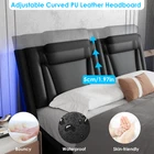 Add this item to your Watchlist Be The First One To Know When The Item Goes ON SALE ! Bed Frame Platform Modern Curved Design Upholstered PU Leather LED Lights Queen DESCRIPTION Create a comfortable life! The king size bed frame with headboard has 16 color LED lights with 6 brightness levels and 4 lighting modes, which can be adjusted to a comfortable, non-glaring adaptive brightness at night. The curved platform bed frame has an upholstered headboard that can be adjusted up or down for height. The headboard is designed to be inclined at 103 degrees for better ergonomics. Comes with 2 additional removable back pillows to provide comfortable support when reading or lying down. Luxurious PU leather is skin-friendly and comfortable, while being easy to clean and maintain. The 12 wooden slats are designed to bring 850 lbs of superb support. It can easily carry the weight of 4 adults. And the quiet foam design keeps it quiet while you sleep. Features: 【LED Bed Frame】 The King Size Bed Frame with LED Lights features RGB LED strips on both sides of the headboard, 16 color and over 20 lighting effects to choose from. You can change the lights via the app or remote control. The hidden light strips flicker to different rhythms and don't worry about hurting your eyes in the dark! 【Adjustable Headboard with Pillow】 The height of the headboard can be adjusted to fit the thickness of the mattress. The removable upholstered pillow is in the perfect position to support your neck or head and comfortably recline back when you are working, reading or tired. 【Luxury PU Leather】The headboard is covered by PU leather and filled with high-density foam inside.PU surface, touch skin-friendly, and waterproof easy to clean. Only need wet cloth to wipe gently. 【Unique Wavy Curve】 103 degree leaning headboard is the ergonomic design, the wave curve and rounded design of the upholstered bed frame on both sides and the end of the bed protects you from bumps and bruises. And it brings ultimate comfort and elegant appearance. 【No Box Spring Needed】The platform bed frame has a sturdy wood and metal support structure system,12 wooden slats and extra wooden support leg, providing optimum support. 【Easy to Assemble】 Velcro slats are designed to simplify slat assembly steps, with numbered parts and step-by-step detailed instructions, 2 adults can easily assemble this platform bed frame in 1 hour. Specifications: Color: White Material: Wood,PU Leather,Foam Overall Size: 90.6*63.4*41.3 in Item Weight: 97.55 lbs Weight Capacity: 850 lbs Adjustable Height: 1.97 in Recommended Mattress Thickness: 10''- 12'' Assembly Required: Yes Package Contents: 1 x Queen Size LED Bed Frame 1 x Assembly Kit 1 x Instruction ¡Crea una vida cómoda! El marco de la cama tamaño king con cabecera tiene 16 luces LED de colores con 6 niveles de brillo y 4 modos de iluminación, que se pueden ajustar a un brillo adaptable cómodo y no deslumbrante durante la noche. El marco de la cama con plataforma curva tiene una cabecera tapizada que se puede ajustar hacia arriba o hacia abajo en altura. La cabecera está diseñada para inclinarse 103 grados para una mejor ergonomía. Viene con 2 almohadas traseras extraíbles adicionales para brindar un apoyo cómodo al leer o acostarse. El lujoso cuero PU es agradable para la piel y cómodo, además de fácil de limpiar y mantener. Los 12 listones de madera están diseñados para brindar 850 libras de excelente soporte. Puede soportar fácilmente el peso de 4 adultos. Y el diseño silencioso de espuma lo mantiene silencioso mientras duerme. Características: 【Marco de cama LED】 El marco de cama King Size con luces LED cuenta con tiras de LED RGB en ambos lados de la cabecera, 16 colores y más de 20 efectos de iluminación para elegir. Puedes cambiar las luces a través de la aplicación o el control remoto. ¡Las tiras de luz ocultas parpadean a diferentes ritmos y no te preocupes por lastimarte los ojos en la oscuridad! 【Cabecera ajustable con almohada】 La altura de la cabecera se puede ajustar para adaptarse al grosor del colchón. La almohada tapizada extraíble está en la posición perfecta para apoyar el cuello o la cabeza y reclinarse cómodamente cuando trabaja, lee o está cansado. 【Cuero PU de lujo】 La cabecera está cubierta con cuero PU y rellena con espuma de alta densidad en el interior. Superficie de PU, agradable al tacto y resistente al agua, fácil de limpiar. Sólo necesita un paño húmedo para limpiar suavemente. 【Curva ondulada única】 La cabecera inclinada de 103 grados tiene un diseño ergonómico, la curva ondulada y el diseño redondeado del marco de la cama tapizado en ambos lados y el extremo de la cama lo protegen de golpes y contusiones. Y aporta la máxima comodidad y una apariencia elegante. 【No necesita somier】El marco de la cama con plataforma tiene un resistente sistema de estructura de soporte de madera y metal, 12 listones de madera y una pata de soporte de madera adicional, lo que proporciona un soporte óptimo. 【Fácil de montar】 Los listones de velcro están diseñados para simplificar los pasos de montaje de los listones, con piezas numeradas e instrucciones detalladas paso a paso, 2 adultos pueden montar fácilmente este marco de cama con plataforma en 1 hora. Especificaciones: Color blanco Material: Madera,Cuero PU,Espuma Tamaño total: 90,6*63,4*41,3 pulgadas Peso del artículo: 97,55 libras Capacidad de peso: 850 libras Altura ajustable: 1,97 pulgadas Grosor recomendado del colchón: 10''- 12'' Requiere ensamblaje: Sí Contenidos del paquete: 1 marco de cama LED tamaño Queen. 1 kit de montaje. 1 x instrucción Collection Fashion Bed Size Queen Bed Type Platform Beds Material Wood;Metal Color Black Finish Black Features Headboard with pillows Is Assembly Required Y Assembled Product Weight 97.55 lb Maximum Load Weight 850LB Assembled Product Dimensions (L x W x H) 90.60 x 63.40 x 41.30 Inches Quality Best Premium Quality