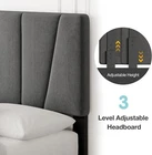 Queen/Full/Twin Size Bed Frame with Adjustable Headboard, Linen Upholstered Platform Bedframe with Strong Wooden Slats, Mattress Foundation, No Box Spring Needed, Easy Assembly, Grey Stylish and Comfortable : This SunnyFurn queen/full/twin size bed frame features high-quality grey linen upholstery on the headboard, wrapped around high elastic memory foam. Its trendy design perfectly complements any bedroom style, providing a soft and comfortable experience for reading or watching TV in bed. Adjustable Headboard : The headboard can be adjusted between 39 to 43 inches, accommodating mattresses from 8 to 16 inches. This feature allows you to choose the perfect mattress height based on your specific needs and preferences, offering flexibility and enhanced comfort. Sturdy Construction : Built with high-quality metal and premium wood, this platform bed frame includes multiple support legs and strong wooden slats. The middle leg support eliminates sagging and prolongs the mattress's life, with a maximum weight capacity of 1200 pounds, ensuring durability for years to come. No Box Spring Needed : Designed as a platform bed frame, it eliminates the need for a box spring, saving you costs and reducing noise. The wooden slats with rubber pads significantly minimize metal friction noise, providing a quiet and comfortable sleeping environment. Easy Assembly : All parts and assembly instructions are packed in one packag e, making it easy to find and assemble. Follow the clear instructions for a hassle-free setup. If you encounter any issues, our customer service team is available to assist you within 24 hours. PAYMENT SHIPPING RETURN CONTACT US PAYMENT We accept payment either via PayPal or any of the following credit cards; Visa, MasterCard, Discover, and American Express. SHIPPING (1) Usually 1 - 2 business days for handling to ship this item once payment has been received. (2) Usually takes 3-10 business days for the delivery. (Most items are delivered within 3-5 business days.) (3) Shipping is within the continental 48 U.S. States only (4) No international shipping (5) No shipping to Alaska, Hawaii, Puerto Rico, Guam, or the Virgin Islands (6) No shipping to Canada or Mexico (7) No shipping to APO/FPO/DPO (8) We do not offer combined shipping services (9) If your shipping address is different than your Paypal address, please add the shipping address to your authorized addresses in your Paypal account. (10 )We can only ship to an authorized Paypal address. We do not accept email to change shipping address. RETURN Your satisfaction is our Guarantee! If you are not completely satisfied with the product that you received, simply contact us either through the eBay messaging system and we will take care of the rest. Our products are covered by a 30 day return/exchange warranty. Our professional qualified staff will attempt to the resolve the issue in the possible case of a connect or compatibility issue. If the issue cannot be resolved we will either have a replacement shipped out to you or we can issue a refund back to your account. We will make your experience as simple and satisfying as possible. CONTACT US Any problem please rest assure to contact us by eBay message first. We will reply you as soon as we can. Brand Unbranded Type Bed Frame Color Gray Frame Material Engineered Wood, Linen, Metal Features STURDY & DURABLE Mattress Included No Assembly Required Yes MPN Does not apply Shape Rectangular Department Adults Style Contemporary/Modern Room Bedroom Country/Region of Manufacture China Item Length 81 in Item Height 39.4"-43.3" Item Width 60.2 in Care Instructions Easy Care Product Dimensions 80.9"L x 60.2"W x 43.3"H Item Weight 67.2 Pounds Model Queen Size Bed Frame Headboard Height 39.4"-43.3" Special Feature Upholstered Weight Capacity 1000 Pounds Number of Drawers without Drawers Finish Polished