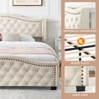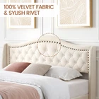Sleek and stylish, turn your bedroom into a sanctuary with our dreamy platform beds. Our velvet platform bed frames are made with distinct details and upholstered headboard for the ultimate sophisticated touch. Our bed is deceivingly simple to assemble, with no box springs required. Rest on slats for optimal support. And our tall, padded headboard adds extra softness so reading, working, or lounging in bed is just as comfortable as sleeping. LUXURIOUS VELVET UPHOLSTERD BED Uniting design and elegant taste, this stunning beige king bed frame is sure to impress. The elemental design features intricate detailing, button tufts on a padded headboard and curved edges. It all comes together to create a lavish yet comfortable appeal, perfect for your bedroom. Sleek, refined and classy, this gorgeous bed will highlight your preference for luxury styling.