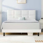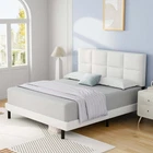 HAIIDE Queen Size Upholstered Platform Bed Frame with Headboard provides a modern style and create a unique sense of exquisiteness for your bedroom.Its framework is constructed with durable steel and center support legs that eliminate sagging and even extend the life of your mattress. The padded headboard, offers extra comfort and adds a hint of glamour. The included slats unroll to provide reliable support to your mattress while eliminating the need for a box spring and providing under-bed storage space.all parts, tools and instructions are conveniently located in the zippered compartment of the headboard for easy.Smartly packaged in one carton for moving around quickly and shipped straight to your door. You can install the bed frame by yourself or with your family in a short time.Available in various sizesï¼Twin,Full and Queen. Heavy Duty Metal and Wood Bed Frame - This upholstered platform bed wood frame is made of sturdy metal construction and solid wood slats, with the optimal structure and the lightest weight ratio. and the sturdy frame to provide dense and strong support for up to 900 lbs. Solid structure: solid wooden planks and metal steel frames form a stable and durable structure, and high-quality materials will prolong the service life of the bed. Simple assembly & quiet and noiseless: Velcro is attached to the wooden planks, which can firmly fix the wooden planks, and the installation is very simple, and the whole installation is noiseless. Beautiful Appearance: Classic button tufted design with high-quality linen fabric and dense foam padding, soft and Stylish, and can match any decorating style. Twin size bed:79.2”*40.2”*42” Full size bed:83.1”*54”*42” Queen size bed:83.1”*60.5”*42” King size bed:83.1”*76”*41”