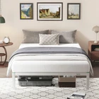 Tips: Before installing the bed frame, please read the instructions carefully to ensure that all parts and screws are firmly attached before use. Easy to Assemble: All the tools for the white queen bed frame, are shipped straight to your door. The simple design helps you assemble quickly and easily, so you can sleep in your new bed in just a few easy steps. This queen size bed measures 80'' x60'' and fits the queen mattress size. Heavy Duty Support: queen size bed frame uses sturdy metal steel for the frame and support legs to provide stable support with a weight capacity of up to 350 lbs. Ten widened wooden slats of this bed frame offer long-lasting support for your mattress without the need for a box spring or mattress foundation. Bed Frame with Storage Space: 14 inch high queen platform bed frame with 12-inch under bed clearance can be considered as an alternative storage zone. It can store your suitcases, boxes, child toys, and other items, which can keep your bedroom tidier and save your space. Noiseless: The support legs of the metal bed frame use durable anti-scratch feet pads to protect your floor from damage. Also, the heavy duty bed frame and secure metal fittings ensure you sleep soundly without squeaking or wobbling. 5-Year Warranty: Our stylish queen bed frame with wooden slat support is available in two colors for your choice. We provide a 5-year limited warranty for this metal platform bed frame. If you have any questions, don't hesitate to contact our customer service for help.