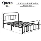 VECELO Bed Frame, Queen Size Metal Platform with Headboard & Footboard, Steel Slat Support Mattress Foundation,No Box Spring Needed The queen metal platform bed frame is made of and durable heavy-duty steel, sturdy 9-legs & reinforced steel slats to provide stable support for the mattress. No box spring is needed. Thick tubular frame & curved lines design of the headboard & footboard, not only can prevent your mattress from sliding, but also easy to blend with a variety of bedroom styles. Sturdy structural design & non-slip cushioned foot pads to avoid noise, bring you a safe and pleasant sleep environment. Meanwhile, a higher headboard of the queen size bed can protect your head and provide you with a relaxed sitting place. 12.6 Inches under bed clearance of metal bed frame provides sufficient storage space for you, making your home nicely organized. Suitable for all mattress types. Come with all parts, tools, and assembly instructions for the metal bed, an adult can handle in under half an hour. 5-year limited warranty and friendly customer support. VECELO Bed Frame: NO Boxing Spring Needed Cost Effective Victorian Headboard With Anti-Scratch Rubber Mat Friendly Customer-Service Specifications: Bed Frame Color: Black Metal Bed Frame Dimension: 78.2” x 40” x 43.3" in (Twin Size) ,78.2” x 54.6” x 43.3”in (Full Size), 82.9” x 60.9”x 43.3”in (Queen Size),82.9” x 76.7x 43.3”in (King Size) Max Load: 450 lb(Twin), 660 lb(Full), 660 lb(Queen),800 lb(King) Package Includes: 1 x Bed Frame 1 x Instruction 1 x Assembly Kit Tips: Please read the instruction carefully before assembly Mattress is not included Ensure all parts and screws are firmly attached before use Shipping We offer FREE shipping on all orders! We ship within Three business days of payment, usually sooner. We use a selection of shipping services such as UPS, FedEx, USPS etc. We only ship to the lower 48 states, no APO/FPO addresses or PO Boxes allowed. Local pickups and combined shipping options are not provided at this time. International buyers – please note: Import duties, taxes, and charges aren't included in the item price or postage cost. These charges are the buyer's responsibility. Please check with your country's customs office to determine what these additional costs will be prior to bidding or buying. Order Cancellation Policy * Order Cancellation Policy ** You can return a product for up to 30 days from the date you purchased it. 1. The seller reserves the right to cancel the special case only due to eBay cancellation fee. 2. The decision of seller is the final. 3. The seller will respond to the cancellation request within 2 business days. Please wait for the result of cancellation. 4. In case the cancellation is not completed by some reasons, the buyer can follow the options below to get the refund. 4.1 The buyer can reject the item when it arrives. 4.2 The buyer can send the item back to the seller within 30 days If the buyer receives item (USA Shipment ONLY). The seller will provide the FREE return label to the buyer when the buyer opens " Return Item" case on eBay by using the reason as "Change my mind" ONLY. 5. When buyer has placed the order. The order will be processed and completed by automatic warehouse system within 5 minutes. In case that buyer sends the cancellation request after 5 minutes of placing the order, the request will be rejected. **Sending direct message to cancel the order is not allowed for every case.* Return Policy - If buyer would like to return the items for refund or replacement, please CONTACT SELLER to receive the free return label from seller. The refund or replacement will be processed with the tracking number of return label which is provided by seller only. The other ways of return which are not approved by seller will not be processed for the refund or replacement. Return You can return a product for up to 30 days from the date you purchased it. Any product you return must be in the same condition you received it and in the original packaging. Please keep the receipt. Payment We accept payment by any of the following methods: eBay Payments Please pay as soon as possible after winning an auction, as that will allow us to post your item to you sooner! Feedback Customer satisfaction is very important to us. If you have any problem with your order, please contact us and we will do our best to make you satisfied. Contact Us If you have any queries, please contact us via ebay. We usually respond within 24 hours on weekdays. Please visit our eBay store to check out other items for sale! Thank you for shopping at our store.