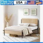 About this item RATTAN HEADBOARD - Skillfully made from premium natural rattan material, the rattan headboard of this stylish bed frame enhances the bedroom's overall aesthetic appeal. Its organic texture and warm tones imbue the space with a serene sense of tranquility and natural beauty, fostering a cozy and welcoming ambiance that promotes rest and relaxation. REFINED DESIGN - The ratten bed frame's headboard boasts rounded corners, infusing a gentle touch to amplify the overall aesthetic appeal with its thoughtful and comfortable design. The cylindrical legs taper gracefully downwards, crafting a beautiful and harmonious structure that complements a variety of bedroom styles. STURDY AND DURABLE - Constructed with high-quality MDF wood panels and sturdy solid metal support frames, this rattan queen bed frame with headboard is designed for lasting durability. The center double row of support bars, along with seven support legs, ensures optimal support for various mattress types. With a weight capacity of 700 lbs, this bed frame offers both strength and stability for a comfortable and secure sleeping experience. SILENT SLAT SYSTEM - The silent slat design minimizes noise, providing you with a tranquil sleeping environment free from squeaks or creaks, allowing you to fully embrace a restful night of peaceful slumber. CONVENIENT ASSEMBLY - Your assembly experience is made effortless with the inclusion of all necessary accessories and detailed instructions in the package, ensuring a smooth and hassle-free setup process from start to finish. With user-friendly guidance and complete accessories provided, you can quickly and easily assemble your new bed frame without any unnecessary complications. Product Description BOHEMIAN RATTAN BED FRAME Skillfully made from premium natural rattan material, the rattan headboard of this stylish bed frame enhances the bedroom's overall aesthetic appeal. Its organic texture and warm tones imbue the space with a serene sense of tranquility and natural beauty, fostering a cozy and welcoming ambiance that promotes rest and relaxation. ROUNDED CORNER DESIGN RATTAN HEADBOARD NOISE-FREE DESIGN Style Boho Color Natural Color Material Rattan, Metal, MDF Size Queen / Full Included Components Headboard, Slat, Footboard Max. Load Capacity 700 LBS Payment Delivery details Terms of sales About us Contact us Payment We accept payment either via PayPal or any of the following credit cards; Visa, MasterCard, Discover, and American Express. Wishing you a happy life! Delivery details We will provide you with the tracking number on the same day or the next day, and transport your package through UPS, DHL, FedEx and other courier methods. If you have any questions, please feel free to contact me and I will do my best to help you solve the problem. Wishing you a happy life! Terms of sales We offer a one month free return and exchange service, and you don't have to bear any losses. We will provide multiple solutions for you to choose from. If you have any questions, please feel free to contact me and I will do my best to help you solve them. We offer a two-year warranty period. If you have any quality issues with the product you purchased within two years, please feel free to contact me. I will provide you with a free replacement service. If you have any questions, please feel free to contact me. I will do my best to help you solve the problem. Wishing you a happy life! About us We are committed to becoming the best eBay seller, with high-quality suppliers, providing the most sincere service, including pre-sales and after-sales service, to give you a satisfactory shopping experience. If you have any questions, please feel free to contact me, and I will do my best to help you solve the problem. Wishing you a happy life! Contact us If you encounter any problems, please contact me by email at the first time, I will provide you with a solution as fast as possible so that I can give you a satisfactory shopping experience, wish you a happy life! Brand GarveeHome Compatible Mattress Size Queen Frame Material Metal Type Bed Frames Features No Box Spring Needed Color Oak Color Finish Powder Coated Room Bedroom Country/Region of Manufacture China Manufacturer Warranty 5 Years Item Weight 67.57 Pounds Item Length 83.6 Item Height 12.6 Item Width 61.7 Footboard Height 12.6 Headboard Height 43.3