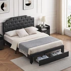 Bed Frame Queen Size W/ Storage 2 Drawers Upholstered Platform Leather Headboard Description: —Specifications: Manufacturer: GAOMON Brand: GAOMON Size: Queen (U.S. Standard) Product Dimensions: 63.78"L x 24.41"W x 5.91"H Special Feature: No Box Spring Needed Color: Black Finish Type: Polished Material: Engineered Wood, Polyurethane Style: Modern Maximum Weight Recommendation: 1000 Pounds Item Weight: 62.17 Pounds —Package Included 1pc Bed Frame —Feature 【legant Upholstered Headboard】: The plush PU leather headboard adds a touch of luxury to your bedroom decor. The button tufted design not only enhances its aesthetic appeal but also provides a comfortable backrest for reading or relaxing in bed. 【Built-in 2 Drawers】This full platform bed frame has 2 storage drawers at the end of the bed, which can store bedding, out-of-season clothes, accessories, etc. Each drawer has 4 casters for smooth movement. The storage space under the bed frame is very suitable for putting on some boxes, shoes, and other items. Meet your storage needs and keep your room in order. 【Noiseless Design】 The steel frame inside the bed frame is covered with sound-absorbing cotton, and all slats are fixed with Velcro nylon straps to reduce friction between the slats, steel frame and mattress, minimize noise and provide comfortable Sleep sleep environment. Enjoy a peaceful sleep experience. 【Sturdy Wooden Slats Support】: Engineered with strong wooden slats, this bed frame provides reliable support for your mattress without the need for a box spring. Enjoy the peace of mind that comes with knowing your bed is built to last. 【Easy Assembly】: With straightforward instructions and all necessary tools included, assembly is quick and hassle-free, allowing you to enjoy your new bed in no time. Bed Frame with 2 Storage Drawers, Platform Bed Frame with Upholstered Headboard The bed frame's upholstered headboard contains high-resilience foam, complemented by delicate button design, showcasing an elegant decorative effect. 2 storage drawers are designed under the bed, providing convenient space to store clothes, shoes, and other items. Payment Delivery Returns Feedback We accept Payoneer only. All major credit cards are accepted through secure payment processor PayPal. Payment must be received within 7 business days of auction closing. If you have bought multiple items from me, you can send me one payment for all the items instead of paying for them individually. When you click the Pay Now button, eBay will automatically determine if there are other items you have won or purchased from me and will combine them for your review. NOTE: Import duties, taxes and chargers are not included in the item price or shipping charges. These charges are the buyer's responsibility. Please check with your country's customs office to determine what these additional costs will be prior to bidding buying. 1. We will delivery out at the handing time when we receive the payment. 2. The delivery time is 3-5 business days to US by usually time.The parcel maybe delay 1-2day of the weekend.Due to the bad weather,Holidays,Hot Season ect.the parcel maybe delay,If you have any problems,mssage us,we will try our best to solve it. 3. We ship to your eBay address. Please make sure your eBay address is correct before you pay. 4. If you want to change the shipping address,message us before our send out. 5. We cannot deliver your order if your state is PR. 1. If you donot receive the items at the delivery time,the parcel has broken/missing,Please message us before you open case/return,we will try our best to solve it. 2. We offer a 30 day return policy from checkout winning date. 3. An RMA number is required for all returns. Message us for return instructions. Items Returned without a RMA number will not be processed. 4. Items defective upon receipt must be packaged in their retail packaging as if new and returned with a detailed description of the problem. 5. Return shipping fees are not refundable. We reserve the right to decline any returns if the above guidelines are not followed. If you are not satisfied with the item for any reason, please do not quick to leave negative/neutral feedback even open request and case without any communication with us. We devote ourselves making EVERY CUSTOMER in 100% Satisfactory and resolve any problem. Thank you for your understanding and recognition,we are always leave positive feedback to all our customers. Reply: All replies will be sent to your email box, if you do not get response within 24 hours (Sat. & Sun. excluded) please check your eBay My Messages in case that our emails will be filtered automatically by your settings.