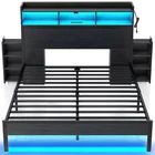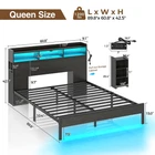 Practical Bookcase Storage Headboard & Wheeled Cabinet: Elevate your storage options with the 2-tier storage shelf on the headboard, providing ample space for commonly used items like magazines, phones, and alarm clocks. On each side, discover 3-tier storage side tables that can be effortlessly pulled out, perfect for organizing books or personal items. With 10.4" under-bed clearance, meet your daily storage needs, creating a tidy and organized space Bed with Charging Station: 2 USB ports and 1 Type-C port are built into the bed frame's headboard, offering worry-free charging for your tablet, phone, or other gadgets. Keep your devices charged and within easy reach with this convenient charging station Multifunctional LED Bed Frame: Immerse yourself in the vibrant experience of the metal bed with multi-color RGB LED light strips. Choose from over 60,000 colors using the phone app or controller, and personalize brightness, color, mode, and timer settings. The LED lights sync with music, setting the stage for a romantic and energetic atmosphere, perfect for parties Sturdy and Durable Structure: Embrace a sense of security and restful sleep with the all-metal support system of the twin bed frame. Robust and durable, it effortlessly supports up to 1200 lbs, ensuring long-lasting stability and reliability for a peaceful night's sleep Easy Assembly: Enjoy a hassle-free assembly experience with conveniently packaged, labeled parts, and tools. Follow the manual, akin to building Lego, for quick and straightforward assembly, saving you time and effort