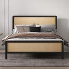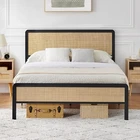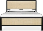 Platform Queen Size Metal Bed Frame with Rattan Headboard and Footboard, Bed Frame with Safe Rounded Corners, Heavy Duty Metal Foundation with Large Storage, No Box Spring Needed Rattan Headboard & Footboard : The Coucheta queen bed frame features a beautifully crafted rattan headboard and footboard, adding a natural texture and charm to your bedroom. This lightweight yet sturdy design enhances the aesthetic appeal, creating a cozy and inviting atmosphere in any space. Sturdy & Durable Construction : Made with high-quality rattan and heavy-duty metal support frames, this bed frame with headboard offers exceptional stability and durability. The addition of center support bars and extra legs ensures optimal support for all types of mattresses, with a remarkable weight capacity of up to 1000 lbs. Noiseless Design : Equipped with rubber strips pressed on the slats, our rattan bed frame minimizes noise caused by friction, providing you with a peaceful and restful sleep environment. Enjoy the tranquility of a noise-free sleeping space without disruptions. Intimate Protection Features : The rounded design of the headboard and footboard not only enhances the visual appeal of the rattan bed frame but also offers safety by protecting you and your loved ones. Additionally, rubber non-slip pads under the bed legs prevent scratches on your floor while improving overall stability. Easy Assembly Process : Our queen bed frame comes with all necessary parts, tools, and clear instructions, making it simple to assemble. In just about 45 minutes, two adults can put this bed frame together without needing any extra tools. Enjoy a hassle-free setup experience!