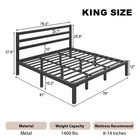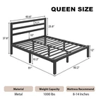 Extended service life: This metal bed frame is crafted from engineering-grade iron alloy, combined with electrostatic spraying and high-temperature baking technology. This results in a matte-textured metal surface that effectively prevents scratches and rust. With 9 thickened bed legs and 14 slats, it can support up to 800 pounds, providing exceptional stability and support for the frame Maximize Storage Space: Worried about bulky luggage crowding your closet? Our metal bed frames provide plenty of storage space underneath, with a vertical clearance of approximately 12 in. This allows for easy access to your clothes, shoes, bags, suitcases, and other miscellaneous items. while keeping your bedroom tidy and organized Modern Style: This metal platform bed frame features a unique headboard design, effortlessly blending fluid lines with a minimalist silhouette to complement any interior decor. Whether your style leans modern, classic, or eclectic, this bed frame fits seamlessly. Its sturdy metal construction not only guarantees exceptional durability but also provides utmost comfort, fulfilling your essential functional needs while adding a touch of warmth and style to your space Noise-free design: Our metal bed frame is equipped with EVA silent strips that effectively prevent noise caused by friction between the slats and metal. Additionally, the bed legs feature a clip design that enhances stability, effectively avoiding issues with loose screws due to prolonged use, ensuring a peaceful sleep experience without creaks Easy Assembly: All the necessary parts, handy tools and easy-to-follow instructions are included in one efficiently packed box for simple setup within 45 minutes, saving you time and hassle Buckle Design+Screw Fixation Using buckle design and screw fixation to strengthen the stability of the bed frame Protective Foot Pads Anti-slip foot pads reduce scratches and slides Metal Slats with Velro Simple and quick installation and noiseless design Payment Method Payment Method Immediate payment is required upon selecting "Buy It Now" or upon checking out through the cart. We accept payment either via PayPal or any of the following credit cards; Visa, MasterCard, Discover, and American Express. Thank you for shopping with us on eBay! Shipping Policy Shipping Policy 1.Normally, Shipped by Fedex, we will ship all orders within 2 business days after the payment is cleared. 2.Buyers have full responsibility to provide us with the correct delivery address on the checkout page before payment is made. Once your payment is completed,if the changes are needed, pls contact us before we ship the product. 3.If an CANCEL ORDER or RE-DELIVERY or ADDRESS CHANGE is needed after we ship your item out, you will be responsible for any fees associated in the condition that you contact us. Returns Policy Returns Policy Returns Accepted, all of our items come with a 30-day return policy. 1. All non-seller mistake returns for refund are subject to 20- 50 USD return fee per box and buyer should pay for the round-trip shipping fee. (E.g. does not fit, bought by mistake or no longer needed). 2. Or if you want post by self , please feel free to contact us via eBay messages for our warehouse address. Once the unwanted item was back to us, please send us the returned tracking number. Our warehouse will track the parcel and then refund you immediately when they arrive. 3.Kindly Note: Used items will not be accepted for return. 4.We reserves the rights to provide buyers a replacement, parts or a full or partial refund. Contact us Contact us 1. Before purchasing, you can contact us directly by clicking "Ask a Question" at bottom of this page. 2. After purchasing, you can contact us by clicking the button named “contact seller” in your eBay purchase history. 3. We will answer your question within 24 hours(except Holiday).