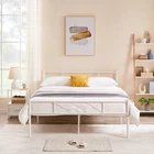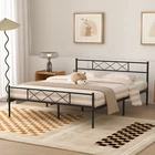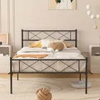 Features 【 Simple Design】Simple lines and metal iron frame combine industrial style and modern style. It can complement all your decor. 【 Sturdy Construction】Consists of high-quality metal slats, side rails and support legs to provide strong support for your mattress. strong and sturdy. 【 No Box Spring Required】Evenly spaced slats provide strong support for your mattress. It is not easy to deform and prolongs the use time of the mattress. 【 Extra Storage Space】There are 12 inches of storage space under the bed for bedding, toys and boxes, making your home look tidy. 【 Easy to Assemble】We provide all necessary hardware and tools, as well as an illustrated installation manual to help you install this metal bed. Specifications of Twin Size: Material: Metal Frame, MDF,Heavy duty steel Slat (No box spring needed) Overall dimensions: 35'' H X 40'' W X 78'' L (Adapts to standard Twin size mattresses) Maximum weight capacity: 400 lb Ground clearance: 12'' Twin weight : 30 lb Specifications of Full Size: Material: Metal Frame, MDF, Heavy duty steel Slat (No box spring needed) Overall dimensions: 35'' H X 55'' W X 78'' L (Adapts to standard full size mattresses) Maximum weight capacity: 600 lb Ground clearance: 12'' Full weight : 42 lb Specifications of the Queen Size: Material: Metal Frame, MDF, Heavy duty steel Slat (No box spring needed) Overall dimensions: 35'' H X 61'' W X 82'' L (Adapts to standard queen size mattresses) Maximum weight capacity: 630 lb Ground clearance: 12'' Queen weight : 47 lb Package Includes: 1 x Bed Frame 1X Installation instructions (all accessories included, no need to prepare your own tools) Note: 1. Please allow ±1/0.5'' error due to manual measurement. 2. Mattress, box spring, and bedding (comforter, sheets, pillows, etc.) are NOT included