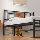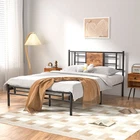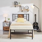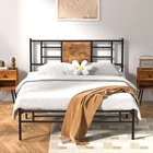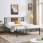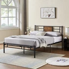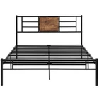 Features v 【 Simple Style】The headboard combines wood and metal slats, making the industrial style more intense. The embellishment of wooden boards makes the whole bed frame more concise, suitable for industrial, country and minimalist style bedrooms. v 【 Heavy Duty Support】The bed frame is composed of reliable 6 metal supports and 13 heavy duty steel slats, providing strong support for your mattress. The powder-coated finish is scratch-resistant for long-term use. v 【 No Noise】The bed frame can better prevent metal friction noise, and has a small tailboard to fix the mattress without creaking or any noise. v 【 No Springs Needed】The overall design of the large bed frame conforms to the convenience of your life, no springs required, it can accommodate a mattress of matching size. Make sure the mattress does not slide. v 【 Extra Storage Space】With a 13.7 inches high frame under the bed, you can have more free space to store your boxes, toys, clothes or other sundries. v 【 Quick Installation】Clear step-by-step instructions help you assemble easily. With all the accessories and instructions included in the package, this queen size bed frame can be easily assembled by one person in half an hour. Specifications of Twin Size: Material: Metal Frame, Engineered Wood,Heavy duty steel Slat (No box spring needed) Overall dimensions: 75"L x 39"W x 40"H (Adapts to standard Twin size mattresses) Maximum weight capacity: 400 lb Ground clearance: 13.7'' Twin weight : 36 lb Specifications of Full Size: Material: Metal Frame, Engineered Wood,Heavy duty steel Slat (No box spring needed) Overall dimensions: 75"L x 54"W x 40"H (Adapts to standard Full size mattresses) Maximum weight capacity: 600 lb Ground clearance: 13.7'' Full weight : 45 lb Specifications of the Queen Size: Material: Metal Frame, Engineered Wood,Heavy duty steel Slat (No box spring needed) Overall dimensions: 80"L x 60.2"W x 40"H (Adapts to standard Queen size mattresses) Maximum weight capacity: 630 lb Ground clearance: 13.7'' Queen weight : 49 lb Packing list: 1 x Bed Frame 1X Installation instructions (all accessories included, no need to prepare your own tools) Note: 1. Please allow ±1/0.5'' error due to manual measurement. 2. Mattress, box spring, and bedding (comforter, sheets, pillows, etc.) are NOT included