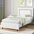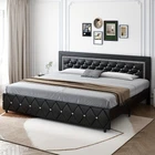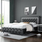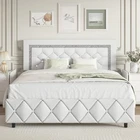 Bed Frame, Upholstered Bed Frame with Diamond Tufted Headboard,