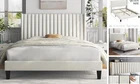 Return Policy Fast Delivery Trusted seller Queen Bed Frame Upholstered Platform Bed with Fabric Headboard, Wing Edge Design/Non-Slip and Noise-Free/Wooden Slats Support/No Box Spring Needed/Easy Assembly, Beige Queen Bed Product Description Classic Design: Classic simple geometric wing side style, channel headboard, and skin-friendly linen fabric, the queen upholstered bed frame is a stunning decor for your bedroom furniture, seriously upgrading your room's aesthetic. Sturdy Wood-Metal Construction: Interior metal framework, 12 pieces of durable wood slats, and dense foam-padding border increase the comfort and durability of this queen upholstered bed with wing design. With a maximum weight capacity of 800 lbs. Fabric Upholstered Headboard: Foam has been used to fill the bed's headboard, making it full and not easy to sag. The resilience brought by the foam fits the body and can effectively lessen the pain of minor bumps. Effective Protection: This linen upholstered bed frame boasts thoughtful designs- protective foot pads made to protect your floor effectively and EVA foam on the center reinforced bearing bar helps minimize noise from any potential creaking and squeaking. No Box Spring Needed: Require no bulky box spring or extra foundation. After assembling the upholstered platform bed with headboard, just put your latex, foam or spring mattress on the wooden slats, and everything is all set. Shipping Returns Payment Shipping Shipping is FREE to all addresses other than APO/PO boxes in the lower 48 states. All our stock ships from US-based warehouses. Shipped via USPS or UPS (depending on location and package weight) Unless stated otherwise, all orders will ship within 24-72 hours of your payment being processed. Check our feedback to see the great reviews of FAST shipping we offer. Returns Seller does not accept returns Payment We currently accept payment via eBay managed payments only. Once payment is cleared, we will dispatch your shipment within 1-3 business days. Please refer to the "Shipping" tab for more information regarding shipping speed to your destination.