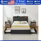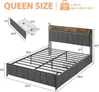 【Storage Headboard with Charging Station】This bed frame with storage headboard allows you to easily store small items such as phones, glasses and books. It is equipped with 2 USB ports and 1 Type-C port, providing a maximum of 5v/3a for fast charging efficiency. The linen upholstered headboard not only adds a stylish touch to your room, but also allows you to comfortably lean back to read books or use your phone. 【king Size Bed Frame with 2 Storage Drawers】This bed frame comes with 2 spacious storage drawers with smooth wheels, perfect for storing clothes or bedding. The screw lock prevents the drawers from sliding out. Additionally, the extra 10.6-inch space under the bed can be used to store shoes, boxes, or suitcases, making the most of the under bed space. 【Ideal for Placement Against the Wall】You have the flexibility to choose the placement of the two drawers under the bed. Placing both drawers on one side allows the other side to be placed against the wall, avoiding wasted drawer space. This feature is particularly suitable for families with kids or limited room space, as placing the bed against the wall prevents children from falling off the bed, providing extra safety. 【More Space for Nightstand】If you have a need for nightstand, you can choose to place a drawer on each side of the foot of the bed, as placing drawers at the head of the bed may be obstructed by nightstand. If you have these requirements above, our bed frame is the perfect choice for you. 【Sturdy Structure & Noise-Free】This bed frame is constructed with 12 high-quality metal slats and 8 heavy-duty support legs, ensuring both comfort and stability. It can withstand a maximum weight capacity of 800 pounds. With no need for a box spring and the use of noise-reducing cotton, you can enjoy a quiet and comfortable sleeping environment. 【Easy Assembly】All the parts and tools of our platform bed frame are marked out in the manual. Clear assembly instruction helps people with zero assembly experience. It only takes around 60 minutes to complete the installation. Any problems with this bed frame, please feel free to contact us, we will provide you with 24 hours professional customer service. Payment Delivery details Terms of sales About us Contact us Payment We accept payment either via PayPal or any of the following credit cards; Visa, MasterCard, Discover, and American Express. Wishing you a happy life! Delivery details We will provide you with the tracking number on the same day or the next day, and transport your package through UPS, DHL, FedEx and other courier methods. If you have any questions, please feel free to contact me and I will do my best to help you solve the problem. Wishing you a happy life! Terms of sales We offer a one month free return and exchange service, and you don't have to bear any losses. We will provide multiple solutions for you to choose from. If you have any questions, please feel free to contact me and I will do my best to help you solve them. We offer a two-year warranty period. If you have any quality issues with the product you purchased within two years, please feel free to contact me. I will provide you with a free replacement service. If you have any questions, please feel free to contact me. I will do my best to help you solve the problem. Wishing you a happy life! About us We are committed to becoming the best eBay seller, with high-quality suppliers, providing the most sincere service, including pre-sales and after-sales service, to give you a satisfactory shopping experience. If you have any questions, please feel free to contact me, and I will do my best to help you solve the problem. Wishing you a happy life! Contact us If you encounter any problems, please contact me by email at the first time, I will provide you with a solution as fast as possible so that I can give you a satisfactory shopping experience, wish you a happy life! Brand grvee Compatible Mattress Size King Frame Material Wood, Linen, Metal Type Bed Frame Features No Box Spring Needed, Storage Drawer, USB Port Product Dimensions 81.5"L x 54.1"W x 42.1"H Maximum Weight Recommendation 1000 Pounds Item Weight 83.8 Pounds Manufacturer Warranty 5 Years