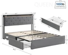 Bed Frame W/4 Drawer & Charging Station Upholstered Platform Wooden Slat Support Description: —Specifications: Manufacturer: GAOMON Brand: GAOMON Size: Full / Queen Product Dimensions: 79.7"L x 53.9"W x 41.3"H / 84.5"L x 60.2"W x 41.3"H Special Feature: Storage Drawer, Storage Headboard, Charging Station Color: Grey Finish Type: Steel,Wood Material: Medium Density Fibreboard, Velet, Metal Style: Modern Maximum Weight Recommendation: 1000 Pounds —Package Included 1x Bed Frame with 4 Storage Drawers —Feature 【Storage Headboard with Charging Station】The storage headboard features built-in 2 AC Outlets and 2 USB ports, along with a 6.5ft power cord. Make charging and common small items such as phones, glasses, and books within easy reach. 【Space Saver Drawers】4 spacious drawers with smooth wheels provide easy sliding and come with a lock design to keep them securely in place. Not only providing ample space for clothes and bedding but also easy to clean under the bed. Greatly optimize your tidy bedroom. 【Stylish and Comfortable】Carefully designed with velvet upholstery and tufted button headboard, this full bed frame perfectly complements various bedroom styles. Velvet beds are known to be more comfortable than other types, as the fabric provides a soft and cozy touch, allowing you to comfortably read or watch TV in bed. 【Sturdy & No Box Spring Needed】Constructed with a heavy-duty metal frame and widened wooden slats, this bed provides optimal support for all types of mattresses without the need for a box spring. The frame structure of the headboard offers double metal frame support, making it more durable and stable. Weight capacity: 1000 lbs. Recommended mattress thickness: 8"-12". 【Noise-Free Sleep】By using wooden slats and EVA sponge, this bed frame effectively prevents any metal noise. You can enjoy a quiet and comfortable sleep environment. 【Easy Assembly】All parts and assembly instructions of this bed frame are included in one package, making it easy to find any component and assemble it with clear instructions. If you encounter any issues during the assembly process, please contact us and we will respond within 24 hours. ExperienceUltimate Comfort and Convenience with GAOMON Queen Size Bed Frame Crafted with luxurious velvet upholstery and equipped with a storage headboard, charging station, and 4 spacious drawers, this bed frame combines style, functionality, and comfort. Charge your devices, store essentials, and enjoy a peaceful sleep environment. Assemble easily and transform your bedroom into a haven of relaxation. Payment Delivery Returns Feedback We accept Payoneer only. All major credit cards are accepted through secure payment processor PayPal. Payment must be received within 7 business days of auction closing. If you have bought multiple items from me, you can send me one payment for all the items instead of paying for them individually. When you click the Pay Now button, eBay will automatically determine if there are other items you have won or purchased from me and will combine them for your review. NOTE: Import duties, taxes and chargers are not included in the item price or shipping charges. These charges are the buyer's responsibility. Please check with your country's customs office to determine what these additional costs will be prior to bidding buying. 1. We will delivery out at the handing time when we receive the payment. 2. The delivery time is 3-5 business days to US by usually time.The parcel maybe delay 1-2day of the weekend.Due to the bad weather,Holidays,Hot Season ect.the parcel maybe delay,If you have any problems,mssage us,we will try our best to solve it. 3. We ship to your eBay address. Please make sure your eBay address is correct before you pay. 4. If you want to change the shipping address,message us before our send out. 5. We cannot deliver your order if your state is PR. 1. If you donot receive the items at the delivery time,the parcel has broken/missing,Please message us before you open case/return,we will try our best to solve it. 2. We offer a 30 day return policy from checkout winning date. 3. An RMA number is required for all returns. Message us for return instructions. Items Returned without a RMA number will not be processed. 4. Items defective upon receipt must be packaged in their retail packaging as if new and returned with a detailed description of the problem. 5. Return shipping fees are not refundable. We reserve the right to decline any returns if the above guidelines are not followed. If you are not satisfied with the item for any reason, please do not quick to leave negative/neutral feedback even open request and case without any communication with us. We devote ourselves making EVERY CUSTOMER in 100% Satisfactory and resolve any problem. Thank you for your understanding and recognition,we are always leave positive feedback to all our customers. Reply: All replies will be sent to your email box, if you do not get response within 24 hours (Sat. & Sun. excluded) please check your eBay My Messages in case that our emails will be filtered automatically by your settings.
