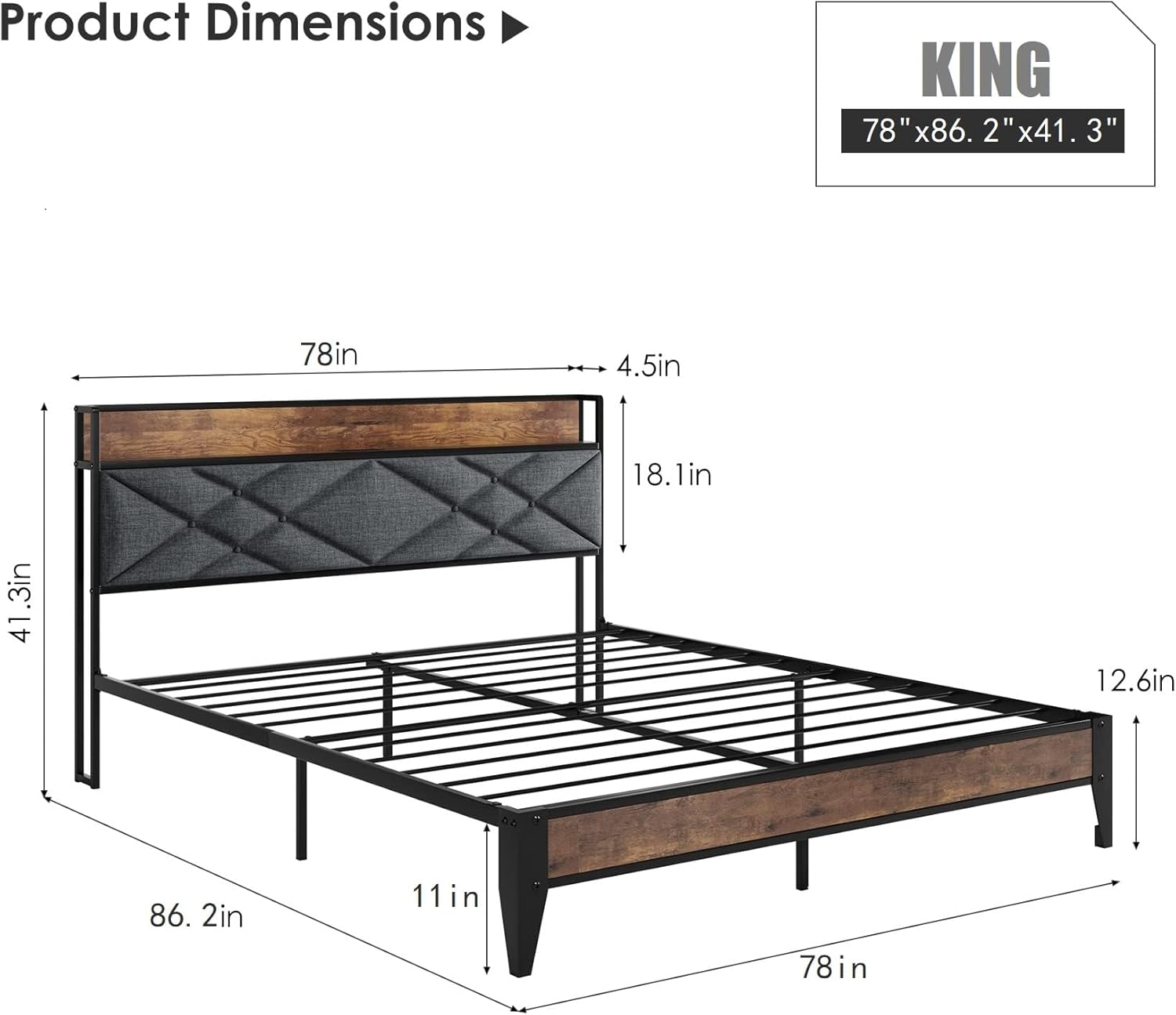Bed Frame W/Platform Storage Rack Station & Button Headboard Metal Slats Support Description: —Package Included 1 Set Bed Frame —Feature Storage Headboard with Charging Station: 2 ETL certified standard plug outlets & 2 USB ports with cable management 6.6ft long power supply cord. The 4" width storage shelf provides you with additional space for phones, glasses and books Noiseless for Comfortable Sleep: Heavy-duty metal frame structure with EVA material reduces friction between the slats, the joints of the king bed frame are connected accurately in place, say goodbye to noise Extra Storage Space: The platform bed stands approximately 11” off the floor for easy storage and space-saving for limited spaces. The sweeping machine is accessible Box Spring Optional: The mattress can be put on the bed frame slats directly, abandon box springs, and you can save more money and time. This bed frame king size is suitable for all kinds of mattresses in height of 8 - 14 inches Wide and Thick Leg Design: The bed legs are designed with a wide and unique angle iron, which is more sturdy than others, at the same tome, it giving your bedroom a unique charm Specifications: Color: Grey Material: Metal & Wood Product Dimensions : 81.5"L x 54.3"W x 41.5"H(Full)/86.2"L x 62.2"W x 41.5"H(Queen)/86.2"L x 78"W x 41.5"H(King) Feature : Charging Station, Soft Headboard, Storage Shelf, 11” Underbed Space Weight Capacity: 1200Lbs Payment Delivery Returns Feedback We accept Payoneer only. All major credit cards are accepted through secure payment processor PayPal. Payment must be received within 7 business days of auction closing. If you have bought multiple items from me, you can send me one payment for all the items instead of paying for them individually. When you click the Pay Now button, eBay will automatically determine if there are other items you have won or purchased from me and will combine them for your review. NOTE: Import duties, taxes and chargers are not included in the item price or shipping charges. These charges are the buyer's responsibility. Please check with your country's customs office to determine what these additional costs will be prior to bidding buying. 1. We will delivery out at the handing time when we receive the payment. 2. The delivery time is 3-5 business days to US by usually time.The parcel maybe delay 1-2day of the weekend.Due to the bad weather,Holidays,Hot Season ect.the parcel maybe delay,If you have any problems,mssage us,we will try our best to solve it. 3. We ship to your eBay address. Please make sure your eBay address is correct before you pay. 4. If you want to change the shipping address,message us before our send out. 5. We cannot deliver your order if your state is PR. 1. If you donot receive the items at the delivery time,the parcel has broken/missing,Please message us before you open case/return,we will try our best to solve it. 2. We offer a 30 day return policy from checkout winning date. 3. An RMA number is required for all returns. Message us for return instructions. Items Returned without a RMA number will not be processed. 4. Items defective upon receipt must be packaged in their retail packaging as if new and returned with a detailed description of the problem. 5. Return shipping fees are not refundable. We reserve the right to decline any returns if the above guidelines are not followed. If you are not satisfied with the item for any reason, please do not quick to leave negative/neutral feedback even open request and case without any communication with us. We devote ourselves making EVERY CUSTOMER in 100% Satisfactory and resolve any problem. Thank you for your understanding and recognition,we are always leave positive feedback to all our customers. Reply: All replies will be sent to your email box, if you do not get response within 24 hours (Sat. & Sun. excluded) please check your eBay My Messages in case that our emails will be filtered automatically by your settings.
