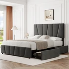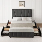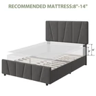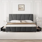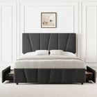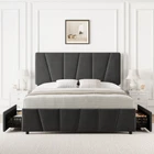 Product Description IDEALHOUSE Luxurious and Functional Upholstered Bed Frame for Full/ Queen/ King Size Elevate your bedroom with the IDEALHOUSE Bed Frame. Featuring 4 spacious storage drawers, an adjustable headboard with stylish linen upholstery, and sturdy construction, this bed frame offers both luxury and practicality. With a noise-free design and easy assembly, it provides a quiet and comfortable sleeping experience. Upgrade your bedroom decor and enjoy ample storage space with this elegant bed frame. Introduction 【4 Storage Drawers】 This king size bed frame comes with four spacious drawers at the bottom, providing ample storage space for bedding, seasonal clothing, and more. Each drawer is equipped with four wheels for easy sliding and a locking structure to secure the drawers in place. 【Adjustable Headboard】 The headboard is adjustable in height, allowing you to match it with mattresses ranging from 8 to 14 inches, perfect for those who prefer higher mattresses. This customization ensures a perfect fit for your desired aesthetic and comfort. 【Stylish Comfortable Headboard】 The headboard is crafted with luxurious velvet upholstery and features unique diagonal patterns, adding a touch of fashion to your bedroom decor. It also provides exceptional comfort, allowing you to lean back and enjoy reading or watching TV. 【Sturdy Construction】 Constructed with high-quality metal and wood, our bed frame boasts a robust structure with ample support legs. It can withstand a maximum weight capacity of 1200 pounds, ensuring for years to come. 【Noise-Free】 By the need for a box spring and using wooden slats with soundproof cotton, our bed frame not only saves you costs but also prevents metal noises. You can enjoy a quiet and comfortable sleeping environment.