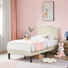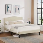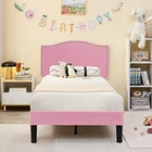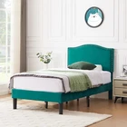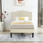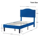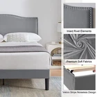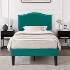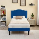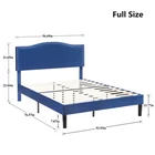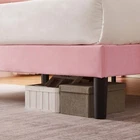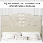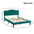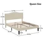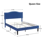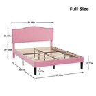 Features 【 Elegant Design】Soft and comfortable velvet and modern stud headboard decoration is cleverly wrapped around the platform bed frame, making you feel comfortable and luxurious, making it a great decoration for the bedroom. 【 Height Adjustable Headboard】The upholstered bed frame features a height-adjustable headboard that can be adjusted to the preferred height for your mattress, providing you with enough back support for extra comfort. 【 Sturdy Structure】The upholstered platform bed contains wooden slats and metal frame, providing dense and strong support. The support legs in the middle can prevent the bed's mattress from sagging and extend the life of the mattress. 【 Space under the bed】The 8-inch high bed frame can be used for storage under the bed, and the sweeping robot can easily pass through, making it more convenient to clean up the garbage under the bed, making your space look tidy. 【 Noiseless Design】The anti-slip strips on the metal frame ensure the stability and quietness of the frame, and it is also equipped with sturdy support legs. The bed frame will not shake when you turn over, allowing you to have a good sleep. 【 Quick Assembly】We provide clear instructions and complete accessories, each accessory is labeled and numbered, you only need to match these numbers to complete the installation in the shortest time. Specifications of Twin Size: Material: Metal Frame; Wood Slats;MDF;Fabric(No box spring needed) Overall dimensions: 76.57'' (L) x 41.73'' (W) x (41.65~47.65)'' (H) Maximum weight capacity: 500 lb Ground clearance: 7.87'' Twin weight:58.15 lb Specifications of Full Size: Material: Metal Frame; Wood Slats;MDF;Fabric(No box spring needed) Overall dimensions: 76.57'' (L) x 56.69'' (W) x (41.65~47.65)'' (H) Maximum weight capacity: 700 lb Ground clearance: 7.87'' Full weight:66.3 lb Specifications of Queen Size: Material: Metal Frame; Wood Slats; MDF; Fabric(No box spring needed) Overall dimensions: 81.29'' (L) x 62.79'' (W) x (41.65~47.65)'' (H) Maximum weight capacity: 800 lb Ground clearance: 7.87'' Queen weight: 73.17 lb Packing list: 1 x Bed Frame 1 x Installation instructions (all accessories included, no need to prepare your own tools) Note: 1. Please allow ± 1/0.5'' error due to manual measurement. 2. Mattress, box spring, and bedding (comforter, sheets, pillows, etc.) are NOT included