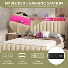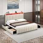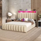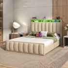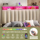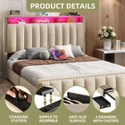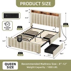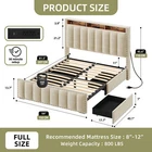 Product Description NOTE: Professional Installation is Recommended. Details: 1. Color Options: Beige 2. Material: Velvet & Metal 3. Special Features: Velvet upholstered platform bed with storage headboard, built-in charging station, RGB LED lighting, four spacious drawers, and noise-free construction. 4. Available Sizes: Full, Queen, King 5. Room Type: Bedroom Full Size Dimensions: 1. Product Dimensions: 81.5"L x 59.3"W x 45.3"H 2. Maximum Weight Capacity: 800 lbs 3. Item Weight: 95 lbs Queen Size Dimensions: 1. Product Dimensions: 86.6"L x 65.5"W x 45.3"H 2. Maximum Weight Capacity: 1000 lbs 3. Item Weight: 101 lbs King Size Dimensions: 1. Product Dimensions: 86.6"L x 77.3"W x 45.3"H 2. Maximum Weight Capacity: 1200 lbs 3. Item Weight: 117 lbs Package Included: 1. Bed Frame ( Mattress Not Included ) 2. Assembling Hardware Kits 3. Instruction Manual Book Product Features 1. Convenient Headboard with Charging Station : The bed frame features a practical headboard with a built-in charging station, offering 2 AC outlets and 2 USB ports for easy device charging. Additionally, the two-tier shelves provide extra storage for books, decorations, or other bedside necessities. 2. Dynamic RGB LED Lighting : Set the perfect mood with customizable RGB LED lighting, offering multiple color settings, music sync modes, and timers. Adjust the lighting effortlessly using the included remote or the smart app for a personalized ambiance. 3. Ample Under-Bed Storage : Four spacious sliding drawers provide plenty of room for storing bedding, clothes, and personal belongings. The smooth-gliding design ensures easy access, while the secure screw clamp keeps drawers firmly in place. 4. Quiet and Durable Construction : This bed frame is built with a sturdy metal frame and noise-dampening sponge strips, ensuring a quiet and stable sleep environment. It supports up to 1,200 lbs and does not require a box spring for added convenience. 5. Simple and Quick Assembly : Assembly is a breeze with clear instructions, all the necessary tools, and a design that allows two people to set it up in under 30 minutes. Customer support is readily available for any questions or issues. Shipping 1. Normally the item will be dipatched within 1 business day if payment is cleared before 12pm PST. 2. Please verify the correct shipping address in your PayPal account before making the payment. We only dispatch the item to the address that is sent to us at the time of checkout. 3. We don't ship to Hawaii, Alaska, Puerto Rico, APO/FPO/PO Boxes. 4. We don't provide local pick-up service. 5. Normally we will use USPS, UPS, FedEx & LTL to dispatch items. Return 1. 30 days Money Back Guarantee. 2. Please contact our customer service to receive a RMA form first if want to return the item. 3. All returned items MUST in new condition with the original package. Payment 1. We accept PayPal and credit card. 2. We will ship to the confirmed Paypal shipping address that is provided with the payment only. On Feb 2, 2025 at 20:45:06 PST, seller added the following information: