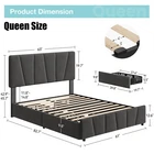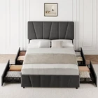 Jojoka Twin / Full / Queen Size Bed Frame with Storage Drawers and Adjustable Headboard, Upholstered Platform Bed Frame with Wooden Slats Support, No Box Spring Needed, Dark Grey 🛏️ Specifications: Color:Grey Material:Metal,MDF Board,Linen Size:Twin/Full/Queen Size Twin Size:75.4"L x 40.9"W x 45.7"H Full Size:78"L x 57.1"W x 45.7"H Queen Size:82.7"L x 63"W x 45.7"H Size of Drawers:27.6"L x 19.7"W x 5.5"H Max. Weight Capacity:800 lb Recommended Mattress: 8"-14" Special Feature:with Adjustable Upholstered Headboard,with Storage Drawers,Sturdy and Durable,Easy Assembly Please Note:Mattress not included! 🛏️ Features: 👍 【Storage Drawers】 This bed frame comes with spacious drawers at the bottom, providing ample storage space for bedding, seasonal clothing, and more. Each drawer is equipped with four wheels for easy sliding and a locking structure to secure the drawers in place. 👍 【Adjustable Headboard】 The headboard is adjustable in height, allowing you to match it with mattresses ranging from 8 to 14 inches, perfect for those who prefer higher mattresses. This customization ensures a perfect fit for your desired aesthetic and comfort. 👍 【Stylish Comfortable Headboard】 The headboard is crafted with luxurious velvet upholstery and features unique diagonal patterns, adding a touch of fashion to your bedroom decor. It also provides exceptional comfort, allowing you to lean back and enjoy reading or watching TV. 👍 【Sturdy Construction】 Constructed with high-quality metal and wood, our bed frame boasts a robust structure with ample support legs. It can withstand a maximum weight capacity of 800 pounds, ensuring durability for years to come. 👍 【Noise-Free】 By eliminating the need for a box spring and using wooden slats with soundproof cotton, our bed frame not only saves you costs but also prevents metal noises. You can enjoy a quiet and comfortable sleeping environment. 👍 【Easy Assembly】 All the parts and assembly instructions for this bed frame are packed in one package, making it easy for you to find any of the parts. Therefore, it is easy to assemble according to the clear assembly instructions. If you encounter any problems in the assembly process, please contact us promptly, we will reply in 24 hours. Elevate Your Bedroom with the GAOMON Twin Size Bed Frame. Featuring 2 spacious storage drawers, an adjustable headboard with stylish linen upholstery, and sturdy construction, this twin bed frame offers both luxury and practicality. With a noise-free design and easy assembly, it provides a quiet and comfortable sleeping experience. Upgrade your bedroom decor and enjoy ample storage space with this elegant and durable bed frame. Adjustable Headboard for Versatile Mattress Sizes Customize your bed frame to accommodate mattresses ranging from 8 to 14 inches, catering to those who prefer taller mattresses. Luxurious Linen Upholstery Enjoy comfort and easy cleaning with the skin-friendly linen material, perfect for women and infants. Embedded Design for Stability Enhance structural integrity and prevent mattress slippage with the embedded design, combining functionality and aesthetics. Smooth Drawer Wheels Effortlessly access your belongings with four smooth wheels on each drawer, ensuring convenient use and movement. Easy to Assemble Simplify assembly with labeled parts and user-friendly design, allowing for quick and effortless setup of the bed frame. Clever Drawer Locking Structure A simple yet clever locking structure that keeps the drawers securely in place, ensuring stability and convenience. 📦 Package Included: Bed Frame Installation Tool User Manual 🏙️About us Worried about not finding your ideal furniture?Let's unlock all your worries!We are a large and competent e-commerce company with more than ten warehouses in the US.We have provided millions of products for our customers!Our brand is dedicated to providing our customers with high-quality, uniquely designed, and well-crafted products at affordable prices.We have many storage products as wardrobes, shoe cabinets, lockers, etc. We also have different furniture for you to choose from, giving you an ideal solution to decorate your home. 🚚 About Shipping After receiving payment, we will process your order within 1 working day (excluding weekends),and it will takes about 5-10 days to arrive. ☎️After Sales All items will be strictly inspected before being shipped,but we cannot determine what will happen to them during transportation.We hope that all our buyers can receive complete package.If you have any questions when receiving the items,please feel free to contact us at any time and we will do our best to solve the problem for you.