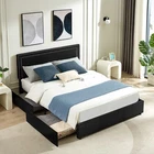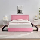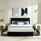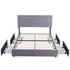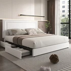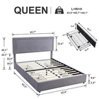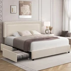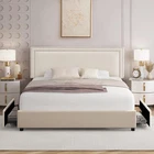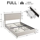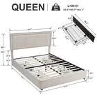 Features 【 Modern and Elegant Style】Simple nail decoration design style upholstered headboard, not only comfortable, but also bring you a warm and soft atmosphere, the elegant and classic design can be perfectly matched with various home decorations, it is a must for the bedroom good decoration. 【 Sturdy Construction】The metal frame and 12 wooden slats and 10 leg support platforms can extend the life of the mattress, providing strong support for various types of mattresses. Box springs are not required. 【 Space-Saving Drawers】There are four steel drawers under our storage bed, which provide enough storage space for your bedding, clothes and more. With wheels, it slides in and out quickly for easy access. 【 No Box Springs】Metal frame and 12 wooden bars support the platform, prolonging the life of the mattress, this upholstered bed frame is suitable for all kinds of mattresses, springs, memory foam, latex, or hybrid mattresses. 【 Noise-free Design】This metal frame uses foam padding inside to ensure that there will be no noise from the bed when you turn over in the middle of the night. Enjoy a good night's sleep with strong support leg clearance, the perfect noise-free bed frame. 【 Easy to Assemble】 This bed can be installed quickly, all parts, tools and assembly instructions are included. Just follow the pictures step by step. If you have any questions, please contact us. Specifications of Full Size: Material: Metal Frame; Wood Slats ; MDF; Fabric (No box spring needed) Overall dimensions: 7 8.5 "L x 5 9.8 "W x 4 4.1 "H Maximum weight capacity: 750 lb Full weight: 83 lb Specifications of Queen Size: Material: Metal Frame ; Wood Slats ; MDF;Fabric(No box spring needed) Overall dimensions: 8 3.7 "L x 6 5.7 "W x 44.1 "H (Adapts to standard Queen size mattresses) Maximum weight capacity: 800 lb Queen weight : 90 lb Packing list: 1 x Bed Frame 1 x Installation instructions (all accessories included, no need to prepare your own tools ) Note: 1. Please allow ±1/0.5'' error due to manual measurement. 2. Mattress, box spring, and bedding (comforter, sheets, pillows, etc.) are NOT included.