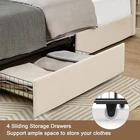 Return Policy Fast Delivery Trusted seller Full Bed Frame with 4 Storage Drawers, Upholstered Platform Beds with Velvet Headboard and Charging Station-Ports for USB and Type-C, Noise-Free, No Box Spring Needed, Easy Assembly, Beige Product Description Velvet 【Platform Bed with Charging Station】This upholstered bed frame full with charging station on each side headboard, it's convenient to plug in your phone, tablet, alarm clock and lamp any time, allowing you to charge various electronic devices within easy reach.Type A and Type C (matching both Android and IOS devices). 【Bed Frame with 4 Storage Drawers】Full size bed frame with drawers offer a storage solution, allowing you to keep your bedroom tidy and organized. Store extra bedding, blankets, clothing, or personal items with ease, maximizing every inch of available space. 【Velvet Upholstered Headboard】 full platform bed frame with headboard that made of high-quality velvet fabric with a built-in memory sponge with high resilience. Whether you're unwinding with a good book or catching up on your favorite shows, it will provide you with a comfortable support. 【Robust & Strong Construction】Constructed with 12 heavy-duty metal slats and 9 reinforced legs, our full bed frame with storage can support the weight capacity of up to 1100 lbs. this velvet full platform bed frame offers unparalleled strength and support, providing a stable and dependable foundation for your mattress. 【Noise Free & No Box Spring Needed】 This full bed frame with headboard and storage equipped with EVA sponge reduces the noise caused by turning over and avoid friction between metal slats,effectively eliminating noise. Require no bulky box spring or extra foundation. After assembling the full bed frame with storage, just put your latex, foam or spring mattress on the wooden slats, and everything is all set. 【Excellent Customer Service】 We are responsible for any product issue, just reach us for support if you have any problems after you received our storage bed frame queen. We will address any issues promptly and efficiently within 24 hours. Shipping Returns Payment Shipping Shipping is FREE to all addresses other than APO/PO boxes in the lower 48 states. All our stock ships from US-based warehouses. Shipped via USPS or UPS (depending on location and package weight) Unless stated otherwise, all orders will ship within 24-72 hours of your payment being processed. Check our feedback to see the great reviews of FAST shipping we offer. Returns Seller does not accept returns Payment We currently accept payment via eBay managed payments only. Once payment is cleared, we will dispatch your shipment within 1-3 business days. Please refer to the "Shipping" tab for more information regarding shipping speed to your destination.