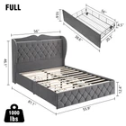 BED WITH 4 FABRIC STORAGE DRAWERS — Featured with 4 rolling drawers under the bed, this upholstered bed frame gives you both a comfortable place for rest and sleep and ample storage space under the bed, perfect for storing bed sheets to accessories or off-season clothing. HEADBOARD WITH STORAGE SHELF & CHARGING STATION — The bed headboard is built-in with 2 outlets, USB, and 1 Type-C charging port. Convenient for you to place iPhone/Android and other devices on it. The queen bed frame with a storage shelf helps you easy to find your phone, turn off the alarm clock, and get stuff you need while enjoyably lying on the bed. TALL HEADBOARD & PROTECTIVE BACK PANEL: 46.1" tall wingback headboard better supports your head and shoulders when leaning, and fits 8-12 inches thick mattresses. The back panel provides additional reinforcement to the bed frame, preventing any wobbling or movement. It acts as a protective barrier, keeping items from falling behind the bed and potentially causing damage. TALL HEADBOARD & PROTECTIVE BACK PANEL: 46.1" tall wingback headboard better supports your head and shoulders when leaning, and fits 8-12 inches thick mattresses. The back panel provides additional reinforcement to the bed frame, preventing any wobbling or movement. It acts as a protective barrier, keeping items from falling behind the bed and potentially causing damage. SUPER STURDY & NOISE FREE - The sturdy steel frame and strong wood slat support ensure that your mattress is securely held up and prevents sinking, providing firmness and durability for long-lasting comfort. Maximum Load Capacity 1000 LBS. the EVA silent strip between the bed and the metal frame reduces frictional noise. EASY ASSEMBLY: This intelligently crafted bed combines comfort and style seamlessly. It comes with all the necessary parts and tools for easy and hassle-free assembly. Two people can assemble this upholstered bed in approximately 40 minutes. Recommended mattress height: 8"-12". Payment Delivery Returns Feedback We accept Payoneer only. All major credit cards are accepted through secure payment processor PayPal. Payment must be received within 7 business days of auction closing. If you have bought multiple items from me, you can send me one payment for all the items instead of paying for them individually. When you click the Pay Now button, eBay will automatically determine if there are other items you have won or purchased from me and will combine them for your review. NOTE: Import duties, taxes and chargers are not included in the item price or shipping charges. These charges are the buyer's responsibility. Please check with your country's customs office to determine what these additional costs will be prior to bidding buying. 1. We will delivery out at the handing time when we receive the payment. 2. The delivery time is 3-5 business days to US by usually time.The parcel maybe delay 1-2day of the weekend.Due to the bad weather,Holidays,Hot Season ect.the parcel maybe delay,If you have any problems,mssage us,we will try our best to solve it. 3. We ship to your eBay address. Please make sure your eBay address is correct before you pay. 4. If you want to change the shipping address,message us before our send out. 5. We cannot deliver your order if your state is PR. 1. If you donot receive the items at the delivery time,the parcel has broken/missing,Please message us before you open case/return,we will try our best to solve it. 2. We offer a 30 day return policy from checkout winning date. 3. An RMA number is required for all returns. Message us for return instructions. Items Returned without a RMA number will not be processed. 4. Items defective upon receipt must be packaged in their retail packaging as if new and returned with a detailed description of the problem. 5. Return shipping fees are not refundable.We reserve the right to decline any returns if the above guidelines are not followed. If you are not satisfied with the item for any reason, please do not quick to leave negative/neutral feedback even open request and case without any communication with us. We devote ourselves making EVERY CUSTOMER in 100% Satisfactory and resolve any problem. Thank you for your understanding and recognition,we are always leave positive feedback to all our customers. About Reply: All replies will be sent to your email box, if you do not get response within 24 hours (Sat. & Sun. excluded) please check your eBay My Messages in case that our emails will be filtered automatically by your settings. On Oct 12, 2023 at 02:32:48 PDT, seller added the following information: