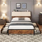 【Bed Frame with Charging Station】The headboard is equipped with a charging station that includes 2 AC outlets, a USB port, and a Type-C port, allowing you to easily charge various electronic devices. The ergonomically designed headboard provides optimal support and comfort while you relax. 【4 Sliding Storage Drawers】Four under-bed storage drawers provide hidden storage space, helping you keep your bedroom neat and organized. The drawers can be easily secured to the bed frame to prevent them from sliding out. 【Storage Headboard】The headboard offers space to place bedside essentials like photo albums, phones, and alarm clocks for easy access. The large storage shelf behind provides additional space, making it convenient to store luggage, storage boxes, and more. 【Sturdy Structure】The bed frame features an all-metal support system, making it robust and durable. Metal rods replace traditional wooden slats, significantly enhancing the load-bearing capacity. It can easily support up to 1000 pounds, ensuring a peaceful sleep. 【Noise-Free Design】To eliminate creaking sounds and ensure your sleep quality, we have added silent sponge strips to the central frame, preventing friction between metal parts. This way, you can enjoy a quiet, uninterrupted sleep. 【Easy Assembly】Clear instructions and necessary accessories are included in the package. Each part is clearly labeled and numbered, making assembly straightforward and time-saving. If you encounter any problems, please feel free to contact us.