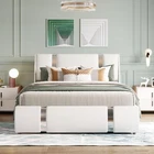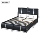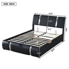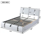 Bed Frame with Hydraulic Storage Upholstered Faux Leather Platform Bed Features: It's very simple to make your home unique, this faux leather upholstered bed with a hydraulic storage system is worthy of your possession. Size is a good choice whether it is used in the master bedroom or guest room. This bed is available in 2 colors and 2 sizes, white and black/full and queen, allowing you to have a comfortable sleep. The metal strip is stylish that fits any room. Storage under the hydraulic system provides extra space for odds and ends. Weight & Dimensions: Overall Product Dimension: 86.4" L x 55.9" W x 38.6" H (Full Size) / 88.6" L x 62.6" W x 38.6" H (Queen Size) Overall Product Weight: 99.04 LBS (Full Size) / 111.68 LBS (Queen Size) Weight Capacity: 500 LBS Number of Slats: 26 Recommended Mattress Thickness: 6-8" Specifications: Product Type: Upholstered bed Size: Full / Queen Color: White/Black Product material: Faux Leather+Plywood+Metal Assembly Required: Yes Level of Assembly: Partial assembly Box Spring Required: No Mattress Included: No Additional Tools Required: All Tools Included/Screwdriver Avoid power tools: Yes Notes: Manual measurement has been used, there may be some reasonable error. All the pictures are taken by actual samples, slight chromatic aberration may occur due to lighting or display.