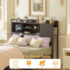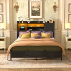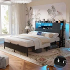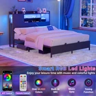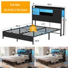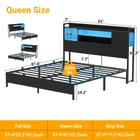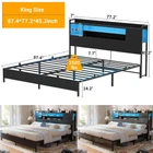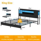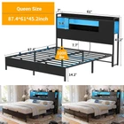 Product Description 【Headboard with Charging Station】 Equipped with a convenient charging station, the bed frame features 3 power outlets and 2 USB charging ports to effortlessly keep your devices charged and within arm's reach. 【Multi-Function RGB LED Light】 This queen size bed frame is equipped with RGB LED light, you can set over 60000 LED colors, brightness, mode, timing function to meet the needs of different styles and different scenes via APP or remote control. The LED lights also sync with music, creating a romantic and energetic atmosphere for parties. Let’s enjoy the metal bed with vibrant multi-color RGB LED light strips. 【Solid & Stable Metal Construction】 The queen-size platform bed frame boasts an ultra-durable metal structure that evenly supports weight distribution across the frame, ensuring stability, eliminate any wobbling, shifting or noise for an improved sleep experience and refreshed wake-ups. The absence of the need for a box spring adds to its convenience and there are 2 nonslip side rails to keep the mattress in place. 【Ample Storage Space】 Experience versatile storage options with the three-layer storage shelves of this bed, offering front and reversible side storage space for your needs. Perfect for organizing alarm clocks, books, glasses, and picture frames. The under-bed storage space provides ample room for belongings and effortlessly contributes to a neat and organized bedroom. 【Easy Assembly and Reliable Service】 Conveniently packaged, it's easy to assemble with labeled parts and tools. Enjoy a hassle-free setup and get ready to experience the comfort of your new bed. If you have any problems, please contact us and we will do our best to solve them. Specification: King Size: 87.4"L x 77.2"W x 45.2"H Weight Capacity: 1500LBS Queen Size: 87.4"L x 61"W x 45.2"H Weight Capacity: 1000LBS Full Size: 82.8"L x 55.1"W x 45.2"H Weight Capacity: 800LBS Color Options: Black Oak, Black Size Options: Full Size, Queen Size, King Size