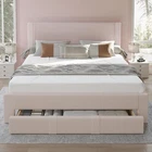 980lbs Scientific Load-Bearing Structure: queen bed frame adopts solid 12 wood slats and a high-density central cross-support design, ensuring balanced pressure distribution and enhancing the breathability and durability of the mattress. 9 thick support feet provide excellent stability, with a weight capacity of up to 980 pounds, making it perfect for adult use and providing a reliable queen size bed frame option. Elegant Velvet Upholstery: The queen size bed frame has an ergonomic headboard filled with soft foam, providing excellent support for your head and neck, relieving pressure and fatigue, and ensuring a comfortable sleep experience. The headboard is made of luxurious velvet upholstery with seamless design to adds a touch of sophistication and lasting comfort and durability. Extra Under-Bed Storage Drawer: The queen size bed frame's pull-out storage drawers equipped with wheels is perfect for storing extra linens, clothes, or other essentials. And 8-inch under-bed storage space allows for ample under-bed storage, making it easy to keep your bedroom organized and clutter-free. The ground clearance also allows the vacuum robot to easily pass through, making cleaning under the bed easy and convenient. Compatible with Various Mattresses: The built-in design of the bedstead ensures that the mattress is stable and suitable for 8 "-14" mattresses, including memory foam, latex and mixed types. This multifunctional bed frame provides stable mattress support without the need for box springs. 360° Anti-Collision & Noise-Free Sleep: The bed frame queen size is equipped with dense foam filling to prevent collisions and bumps and ensure family safety. The sturdy wooden support design and the friction between the velvet-covered frame and the wooden strips eliminate noise, providing a quiet and stable sleeping environment.