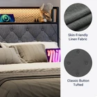 EDWZK Metal Bed Frame with Upholstered Storage Headboard Metal Platform Bed with Smart LED Lights and USB Charging Station 【Storage Shelves with Integrated Charging Station】 storage shelves on the top of the headboard provide enough space to charge or place your phones, clocks, iPad, glasses, and other decorations.Headboard with Charging Station, This design solves the problem of your electronics running low on power while you're lying in bed, allowing you to charge your phone 【Smart RGB LED Light】 Controlled via remote or app, this LED lighting headboard full bed frame allows you to adjust brightness, color, flash mode, and timer settings. With over 60,000 color options, you can create the perfect ambiance. Pair the lights with music for a unique bedroom experience. 【Skin-Friendly Fabric & High-Density Sponge 】 The upholstered platform grey bed frame is decorated with linen fabric, the headboard is finished with button tufting and square stitching, skin-friendly, breathable and wear-resistant, adding a sophisticated style to your bedroom.elastic memory foam, providing you with soft support. Stylish and fully functional, perfect for modern bedrooms. 【Heavy Duty Support Bed Frame】 This bed frame has 13 iron frame cross braces and metal bed legs, which also increase the stability of the bed frame and greatly improve the load-bearing capacity. There is no need to use a spring box. All types of mattresses provide optimal support. It provides a good night's sleep, no more squeaky bed frames. 【Quick Assembly】 With the new structural design, this bed can be assembled in 45 minutes after unpacking. Our designers have reduced the installation steps while keeping the structure solid. Help you save time.This bed frame with drawers is conveniently packaged in one box for easy transportation and assembly