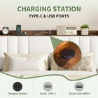 Product Description Bed Frame with Storage Type C and USB C Ports, Storage Headboard, Reading Light, 4 Drawers,Faux Leather Upholstered Platform Bed Organize Your Bedroom Play Video This upholstered bed comes with a bedHeadboard storage and four drawers. Keep your room tidy with this storage bed! Storage Space with USB Charging Comfortable Faux Leather Faux Leather Bed Frame: Artificial leather material does not leave marks, water stains, smooth and shiny. Multi-functional Bed Frame TYPE-C& USB PORTS Storage Headboard Wingback Storage Drawers Previous page 4.5-inch Storage Platform Can hold books, photo frames, glasses, alarm clocks, decorations, etc. Next page STORAGE HEADBOARD STURDY AND DURABLE BED READING LIHGT VELCRO DESIGN
