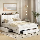 Bed Frame with USB Ports Upholstered Platform Bed with Drawers .reding light