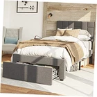 30 Days Return Policy Fast Delivery Trusted seller Twin Bed Frame with Under-Bed Drawer, Platform Upholstered Bed with Headboard, No Box Spring Needed/Noise-Free, Grey Product Description Sturdy Construction: Thicken and widen Wooden Slats and metal support frame make for a solid platform base to support any mattress. Load capacity up to 880lbs. Twin Bed Dimensions: L*W*H: 76"*40"*43.3". Drawer Dimensions: D*W*H: 20.1"*29.9"*7.3". Platform bed frame weight: 56 lbs. Under-bed Storage: Close to 12-inch clearance from floor to the slats under the bed allows you to store some sundries. And you can put some often-used items into the footboard drawer for easier access. Quick Installation: No further tools needed. This upholstered bed frame's all parts were labeled clearly to make them easy to find. It will only take about 45 mins for an adult to assemble. Stylish and Comfortable: The adjustable headboard is a simple brick design, classic and stylish. The dark grey bed frame is perfect for your bedroom style. EXCELLENT SERVICE: If you have any problem, please do not hesitate to contact us first, we will solve your problem within 24 hours. Shipping Returns Payment Shipping Shipping is FREE to all addresses other than APO/PO boxes in the lower 48 states. All our stock ships from US-based warehouses. Shipped via USPS or UPS (depending on location and package weight) Unless stated otherwise, all orders will ship within 24-72 hours of your payment being processed. Check our feedback to see the great reviews of FAST shipping we offer. Returns As our valued customer, we will do our best to make sure the product you receive arrives to you on time and as expected. If you are not satisfied with your purchase, please contact us within 30 days of receiving your order to process a return. Payment We currently accept payment via eBay managed payments only. Once payment is cleared, we will dispatch your shipment within 1-3 business days. Please refer to the "Shipping" tab for more information regarding shipping speed to your destination.