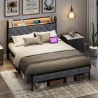 【Storage Shelves with Integrated Charging Station】 storage shelves on the top of the headboard provide enough space to charge or place your phones, clocks, iPad, glasses, and other decorations.Headboard with Charging Station, This design solves the problem of your electronics running low on power while you're lying in bed, allowing you to charge your phone 【Smart RGB LED Light】Controlled via remote or app, this LED lighting headboard full bed frame allows you to adjust brightness, color, flash mode, and timer settings. With over 60,000 color options, you can create the perfect ambiance. Pair the lights with music for a unique bedroom experience. 【Skin-Friendly Fabric & High-Density SpongeThe upholstered platform grey bed frame is decorated with linen fabric, the headboard is finished with button tufting and square stitching, skin-friendly, breathable and wear-resistant, adding a sophisticated style to your bedroom.elastic memory foam, providing you with soft support. Stylish and fully functional, perfect for modern bedrooms. 【Heavy Duty Support Bed Frame】This bed frame has 13 iron frame cross braces and metal bed legs, which also increase the stability of the bed frame and greatly improve the load-bearing capacity. There is no need to use a spring box. All types of mattresses provide optimal support. It provides a good night's sleep, no more squeaky bed frames. 【Quick Assembly】With the new structural design, this bed can be assembled in 45 minutes after unpacking. Our designers have reduced the installation steps while keeping the structure solid. Help you save time.This bed frame with drawers is conveniently packaged in one box for easy transportation and assembly