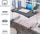 The Feature of this XXL Lap Desk 1. We installed the Non-slip Silicone Pads on laptop table legs. Its anti-slip function is better than Sponge-Covered table legs. 2. Used as a floor desk for children & adults, it provides a firm platform to keep while Online classes and video conferences. 3. The groove slot can be used to place tablet, free your hands, and help you relieve neck and shoulder pain. 4. Lap desk is made of MDF, rather than wood. We decorated black paper to lay the tabletop. Pls avoid bumping the desktop. Bed Tray Table Specification: Weight: 5.5 pounds. Maximum bearing capacity: 88 lbs Size: 26.8βx18.2βx10.8β inch Material: Steel pipe, MDF, ABS materials. How to use it and precautions? 1. When you received a defective desk which tabletops destroyed or scratched, pls contact us to deal with it. 2. We embed a long plastic strip to protect the desk's edge, there is a seam at the junction. Not a "crack". 3. Pls place the table leg on a flat place rather than a soft bed or sofa, with no obstacles under it. 4. Donβt place all items on one side or on the top of the desk, place items evenly on the table, keep it balanced. 5. Pls push the drawer inside hard till hear the "click" sound, confirm that the drawer will not fall off. 6. Due to the machine cuts the form of table desktop, some tiny things like dust stick to the desktop, pls wipe it with a damp cloth. π Work Study Healthier: Its surface is smooth which has strong bearing capacity and durability, you could use the laptop table on bed sofa. π Extra Wide Space: It supports tablet, 11"-17" Notebook. You can stretch your legs freely under the table, working in a comfortable position. π Stable οΌ Organize Desktop: Comfortable Arc and Round Table Corner design which makes you feel well, keeps elbows and wrists in the correct position. π XXL lap desk desktop is larger than most desks. It is a good use for Eating Breakfast, Reading Book, Watching Movie on Bed/Couch/Sofa/Floor. π 12 Months Warranty: The table leg height is 10.8 inches. Its height is not adjustable. If you received any defective items, we will provide a FREE RETURN or REFUND.