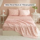 EASY FIT SHEET SET- Cottagecore pink floral sheet set was made from 100% washed microfiber material,which offers strength and durability with exceptional softness.Experience the ultimate comfort and soft touch with our queen bed sheets,sleep better and wake up each morning feeling refreshed,this washed microfiber sheets is stronger than cotton with ultra-tight knit,these luxury queen sheets floral bed sheets won't rip or tear after washing. 4 PIECE QUEEN SHEET SETS - Luxury Soft Queen Size Bed Sheets Set 4 Piece - 1 flat sheet 90"x102",1 fitted sheet 60"x80"x16",2 pillowcases 20"x30".Extra Deep pockets that fit mattresses up to 16" deep with elastic around the fitted sheet.The all-around elastic on our fitted sheets will cover your deep luxurious mattress and any toppers easily, no matter how much you toss and turn. SOFT BED SHEET SET - Cooling Queen Sheet Set is feature with pink floral botanical pattern,which is wrinkle and fade resistant.HIGHBUY bed sheet sets are available in a variety of beautiful designs and colors,prefect for your home decor aesthetic.Ultra soft boho floral sheets is best for Bedroom,Guest Room,Kids Room,RV,vacation home,College Dorm.Ideal choice as a sweet gift for Women,Men,Teens,Boys,Girls,Toddlers,Nursery,Friend,Son,Daughter,Family EASY CARE - Queen sheets is machine washable.Wash on a gentle cycle with cold water,tumble-dry them on low heat.Quick ironing or steam clean when needed,to give your bed that fresh new ironed look every single time.HIGHBUY sheet set is manufactured by factory that is certified OEKO - TEX Standard 100.Visiting the HIGHBUY store,find out your favorite bedding sets. BOHO FLORAL SHEET SET - 4 Piece Comfortable Queen Sheet & Pillowcase Sets decorate your home.Keep you cool,comfortable,and breathable in all seasons.If you are not satisfied with the product for any reason, please contact us and we are happy to assist you.