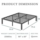 Return Policy Fast Delivery Trusted seller Bed-Frame-Queen, 14 Inch Metal Platform Bed-Frame No Box Spring Needed, Heavy Duty, Easy Assembly, Noise Free, Black Product Description STABLE STRUCTURE: Our queen size bed frame is made of durable reinforced steel; seamless welding; sturdy and durable; no shake; no squeak; provides a quiet and comfortable sleep all night long HEAVY DUTY QUEEN BED FRAME: Reinforced steel support slats, 2500 LB of weight capacity to give the mattress stable support, help extend the life of the mattress, queen bed frame no box spring needed EASY TO ASSEMBLE: Integrated structure design, quick & easy install, package includes all parts of the queen platform bed frame, instructions and tools (No additional tools required) UNDER-BED STORAGE SPACE: 12" clearance, bringing more storage space, keeping the room neat & organized. Minimalist design, black metal bed frame queen, easy to match various styles of rooms NO BOX SPRING NEEDED: Say goodbye to the hassle of an extra box spring. bed frame is specially designed to provide ample support for your mattress without the need for a box spring Shipping Returns Payment Shipping Shipping is FREE to all addresses other than APO/PO boxes in the lower 48 states. All our stock ships from US-based warehouses. Shipped via USPS or UPS (depending on location and package weight) Unless stated otherwise, all orders will ship within 24-72 hours of your payment being processed. Check our feedback to see the great reviews of FAST shipping we offer. Returns Seller does not accept returns Payment We currently accept payment via eBay managed payments only. Once payment is cleared, we will dispatch your shipment within 1-3 business days. Please refer to the "Shipping" tab for more information regarding shipping speed to your destination.