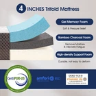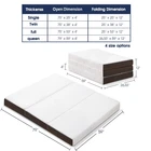 【Trifold Mattress with Storage Bag】: Portable, comfortable, save space. Perfect for temporary sleeping like sleepover guests, camping, traveling, car and etc. Storage bag can be easily retracted and transport. 【Memory Foam】: 1.5 inch gel memory foam top ( Soft ) + 1 inch charcoal foam ( Breathable ) + 1.5 high density base foam ( Support ). Good balance between supple body support and softness. 【New Zipper Design】: Don't worry about falling in between the gaps when lying on the bed, new zipper design makes it comfortable and good for back support. 【Premium Fiber Surface】: Removable, breathable mesh side, non-slip bottom, durable zipper, machine washable. 【Certification】: Memory foam is certificated CertiPUR-US and cover is certificated OEKO-TEX. Product Dimensions: Open 79'' x 59'' x 4'' Folded 26.33'' x 59'' x 12''.If you have any questions about our products, please feel free to contact us, we will find the best solution for every customer.