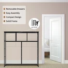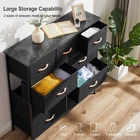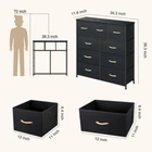 If you need extra storage in your bedroom, closet, entryway or need something to function as both a dresser and TV stand, this will be a perfect choice. This dresser features a rectangular silhouette and streamlined legs, with solid chachole black design of entirety. It is ideal to organize everything from clothes to everyday accessories in its 9 removable and foldable drawers and the marbled wooden top can place photo frames, or potted plants to decorate your home. This dresser measures 39.4" high and 39.4" wide, and works equally well in your entryway, dining room, living space or any corner. Specifications: Dimension: 39.4 " W x 11.7" D x 39.4" H Material: Metal Frame+ MDF board &non-woven Materials Fabric Drawer+ wooden handle Product Care: Wipe clean with a wet cloth and let it dry 9 drawers with 2 different sizes are able to storage at least 50 pairs of socks, 20 T-shirts, 20 towels or vaious toys of lovely children. Adopted with Cationic Fabric which is not easy to fade, anti-wrinkle and abrasion resistant, water resistant etc. Curved wooden handles are easy to push in and pull out the drawers. 0.2in MDF board in the drawer is durable enough to hold all the everyday accessories or the clothes and blankets. Contracted with solid and reliable steel frame to provide stable support and ensure years of use. 4 Adjustable plastic feet help protect your floor from scratches and improve drawer cabinet stability on uneven surface. Detailed instructions will guide you through a hassle-free installation process in 15-30 min. It is well recommended to fix the dresser on the wall with the anti-tip kit included in the package for added safety.