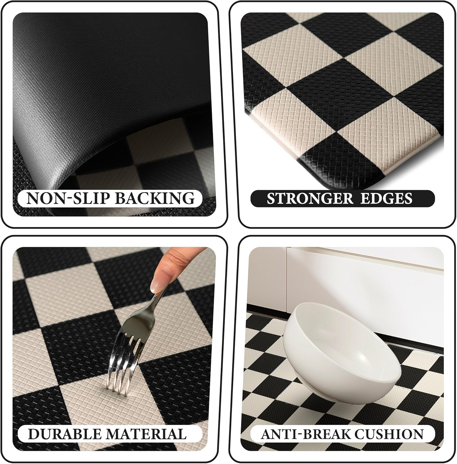Store New Arrivals Add to Favorite View Feedback Contact Beige Black Checkered Grid Checkerboard Kitchen Rug Sets [2 Pcs], Anti-Fatigue, Waterproof Non-Slip Kitchen Mats Heavy Duty Comfort Foam Rug for Kitchen, Floor, Laundry,17"X29"+17"X47" Description Item model number Checkered Item Thickness 0.4 Inches Number of Items 2 Color Beige Black Pattern Checkered Country of Origin China Material Polyvinyl Chloride (PVC) Shape Rectangular Item Weight 4.67 pounds Special Feature Waterproof, Non Slip Product Dimensions 47 x 17.3 x 0.4 inches Size 17.3"x29"+17.3"x47"-0.4"H 【Comfortable & Elegant Simplicity】:Designed with a classic checkered pattern and a 0.4-inch thick cushioned surface, this PVC mat set brings minimalist charm to any kitchen.The clean, geometric design adds a sleek and sophisticated touch to your kitchen, perfectly balancing style and comfort. 【Durable & Odor-Free PVC】: This kitchen mat set features high-quality PVC that resists wear and tear. It's latex-free, odorless, and retains its elasticity, providing consistent comfort and durability over time. 【Waterproof & Anti-Slip】: Crafted to repel water, oil, and stains, this kitchen mat set features a non-slip texture on the bottom, providing reliable stability and preventing unwanted movement on your kitchen floor. Easy to clean—simply wipe down the surface to keep it looking fresh. 【Multi-Scene Functionality】:Designed to fit seamlessly into kitchens, laundry rooms, sinks, and even home offices, this PVC mat set offers both comfort and aesthetic appeal. Its classic design complements any decor, making it a practical and stylish addition to multiple areas of your home. 【Tips & Support】:Ensure the mat is placed on a dry, clean surface to prevent slipping. If you encounter any issues or need assistance, please don’t hesitate to reach out to our team. VivaNest Classic Checkerboard Plaid Kitchen Rugs ABOUT US We offer the best prices around on high quality products. Our E-store includes media such as books, movies, music and games while offering electronics, toys, sporting apparel, clothing, tools, general home, garden items and more. SHIPPING We are always working hard to ensure your package arrives as soon as possible. Please understand that some factors like weather, high postal traffic, and the performance of shipping companies are outside of our control. We offer free shipping to the lower 48 states and ship within 2 business days of payment, usually sooner. We do not accept P.O. Boxes. Please provide a physical address. For shipping outside of the continental USA, we only use eBay's Global Shipping Program.The item is shipped to KY and then sent to the rest of the world. International customers are responsible for all duties and taxes. Continue to check out in order to calculate costs for shipping the item to your country. Messages regarding eBay's Global Shipping Program MUST be directed at eBay EXCLUSIVELY. RETURNS We offer a 30-Day Return Policy on items which you are not completely satisfied with. You have the option for a full-refund or an exchange of the item. No returns are available on items shipped outside of the USA. PAYMENT We accept PayPal. CONTACT US This page content is yet to come Please ad us to your favorite seller and visit again later Thank You CUSTOMER SATISFACTION We try our very best to make sure every customer is completely satisfied. If there's a problem, message us! We're happy to help. WE ACCEPT Copyright © 2021 AutoDS. | All Rights Reserved