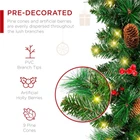 FULL APPEARANCE: Fully fluffed spruce-style branches use hundreds of tips to lend a healthy, natural appearance to your holiday display PRE-LIT HOLIDAY ESSENTIAL: Decorate your stair railing, fireplace, and more with a realistic, 9-foot garland strip that's pre-strung with 50 lights to brighten up the season HIGH-QUALITY DESIGN: Crafted with durable, flame-retardant PVC branches and a hidden battery box, so you can light it up in a variety of decorative setups without loose cords hanging CORDLESS DESIGN: This garland comes with a weather-resistant battery box, making it ideal for both indoor and outdoor use-no plugs needed, simply add it to your favorite display and watch it shine! PRE-DECORATED: Trimmed with pine cones and artificial red berries to create lively, yet wintery appeal that captures the holiday spirit; OVERALL DIMENSIONS: 108"(L) x 8"(W) x 6"(H)