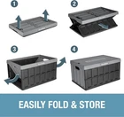 VERSATILE- Multi-functional collapsible storage bins with lids, suitable for home, office, dorm, RV, or garage use, ideal for organizing sporting equipment, tools, or food items, and perfect for efficient moving and storage solutions. LIGHTWEIGHT- These collapsible storage containers store a large amount of items while remaining lightweight and convenient to use, thanks to their ergonomic side-grip handles. You can securely place the lid on either the bottom or top of the crate COLLAPSIBLE & STACKABLE: To collapse, simply push from the bottom of the short sides to make the bins quickly fold flat; crates can be vertically stacked up to 3 high when open or closed with their interlocking nesting system design ECO FRIENDLY - Heavy duty plastic pop-up bins made from 37% recycled plastic and 63% polypropylene regrind offer a great environmentally friendly alternative to flimsy plastic bins, cheap reusable totes and unstable cardboard boxes DIMENSIONS: Measuring 21.12"L x 14.12"W x 11.5"H, it collapses down to 2.5" in height and holds 46 liters by volume, with a maximum load capacity of 75 pounds