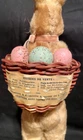 This is a vintage Bethany Lowe French Easter Bunny Rabbit figurine standing at 16 inches tall. The Rabbit has a basket of robin’s eggs with a French advertising label on it which states "Maisons De Vente" (Green Houses) along with Boulevard addresses and delivery notes. The velveteen material is clean and shines with different color variations in different lighting. It is in very good condition (see pics). It has intricate details and high-quality craftsmanship which are sure to impress and bring joy to any Easter enthusiast or collection. No card or tag.